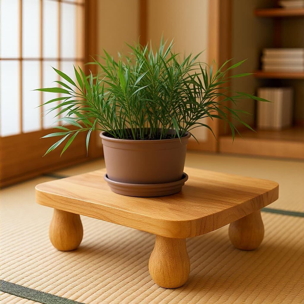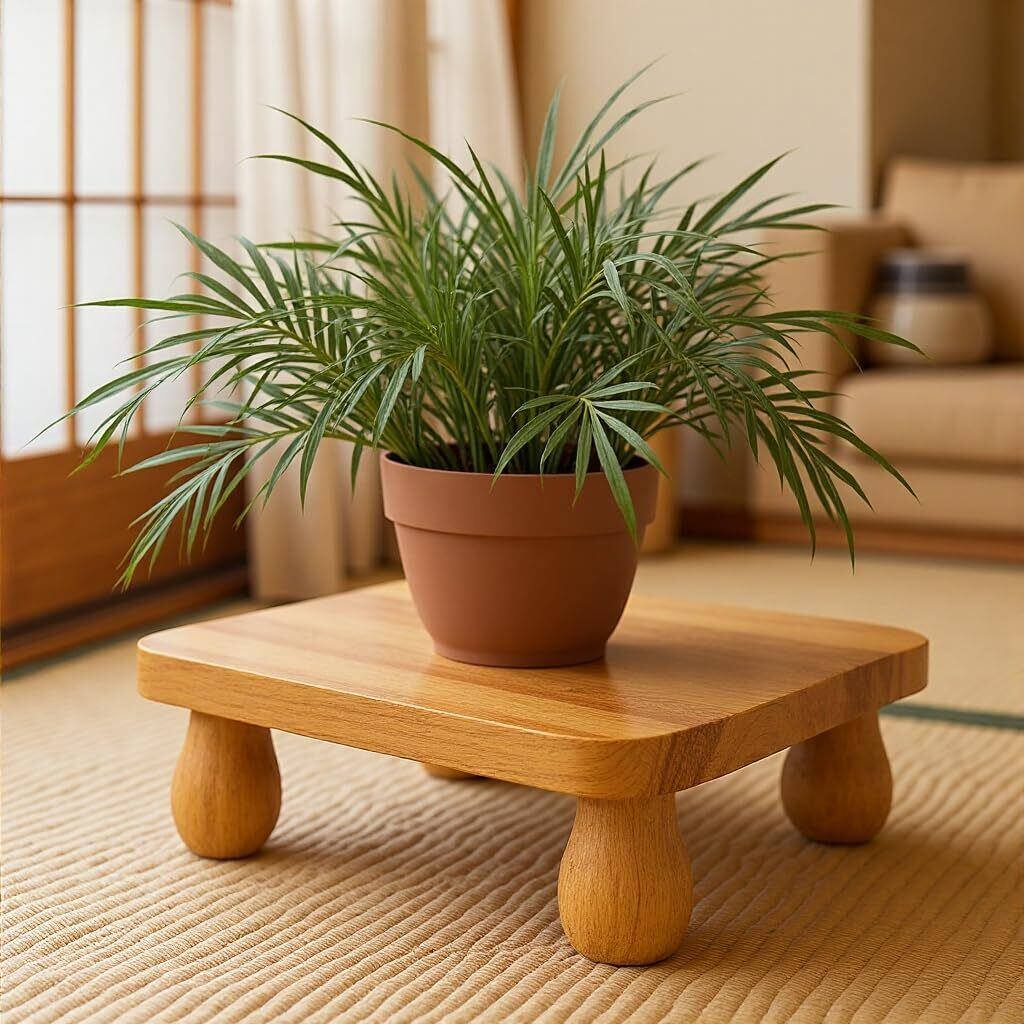 木製フラワースタンド: 高級木材で作られた、スタイリッシュな花台です。
