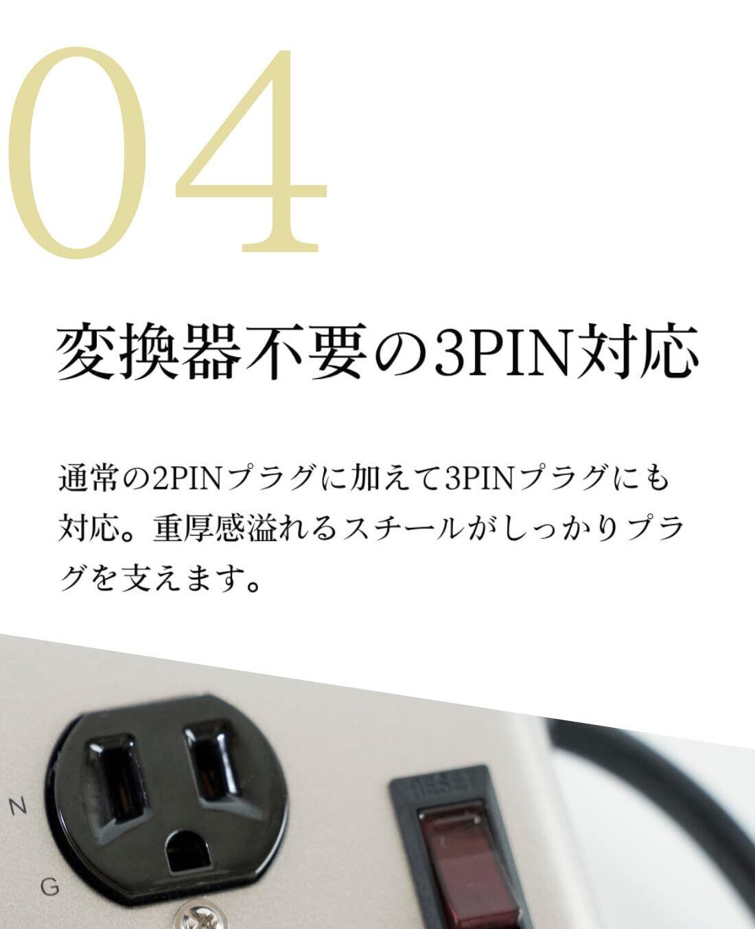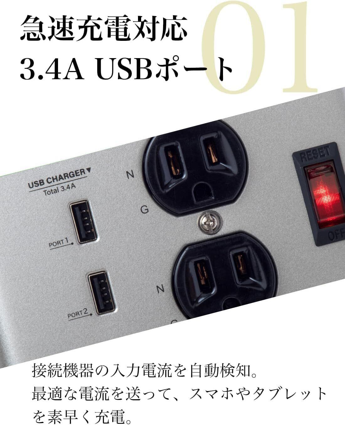 特徴 オン/オフスイッチ, USBスロット, サージ保護