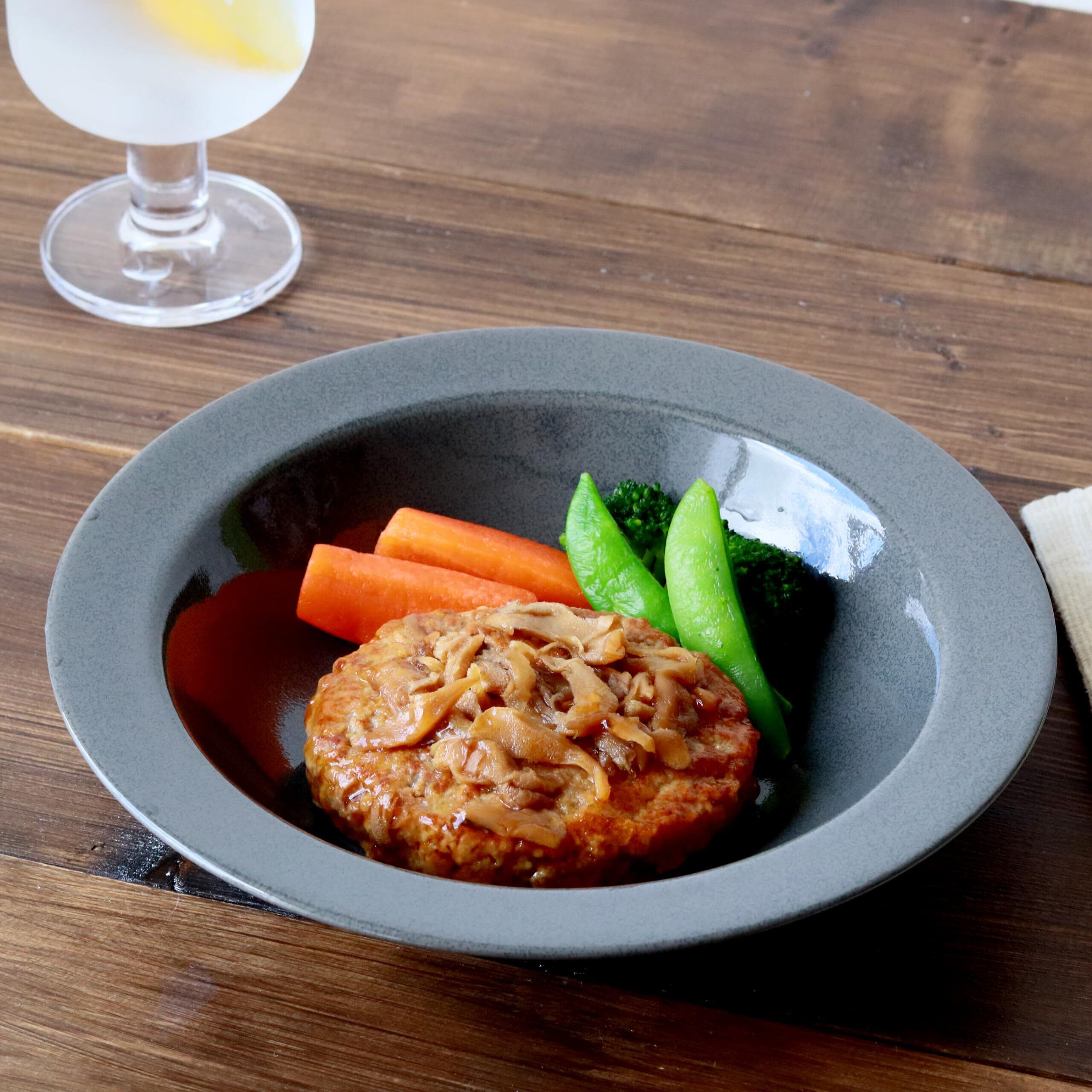パスタ皿やカレー皿としてはもちろん、深さがあるのでドレッシングをたっぷりかけたサラダや煮物など、汁気のあるお料理にもお使いいただけます。 大人くすみカラーのグレーは優しい色合いで主張しすぎることがないので、様々なお料理と相性の良いお皿です。 リムがあるので配膳の際にも持ちやすく、お料理がこぼれにくいという実用性も兼ね備えています。