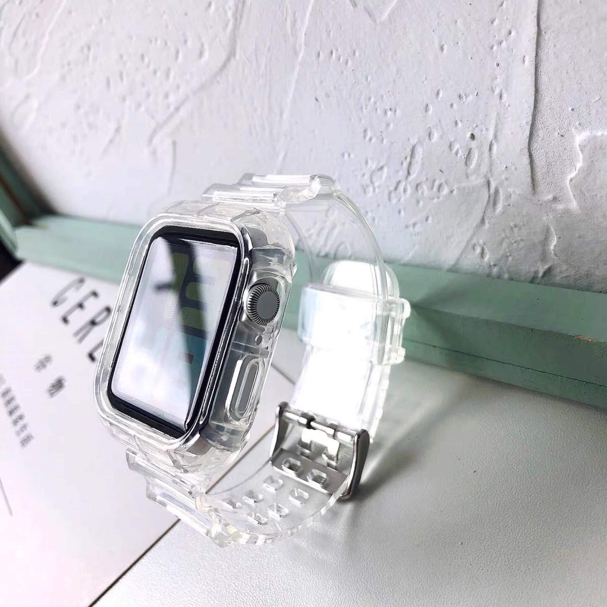 【特価セール】コンパチブル apple watch バンド アップルウォッチバンド スポーツバンド 一体型交換用ベルト 透明 クリア 耐衝撃ベルト iWatch Series 49mm 46mm 45mm 44mm 42mm 41mm 40mm 38mm 10/9/Ultra2/Ultra/8/7/6/5/4/3/2/1/SEに対応 TPU材質 全面保護ケース (46mm(Series 10)) | gsmshop