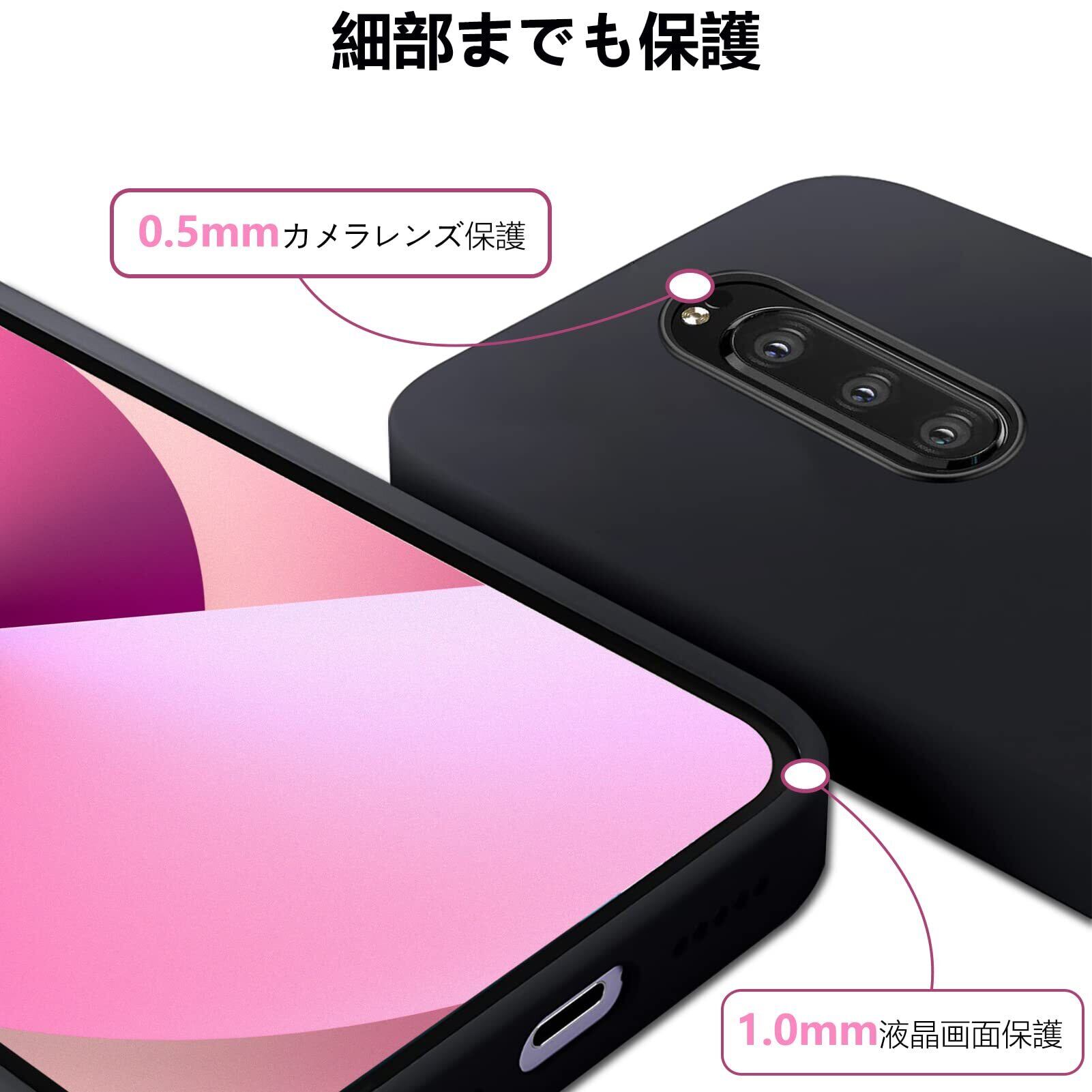 【レンズまで全面保護】本体に従って高低差設計、液晶画面より1mm高め。カメラレンズより0.5mm高め、外部と接触せず傷付く心配はない。更に、背面サイドでは少し高めがあり、滑り止め機能が備わって、ケース背面までも傷から保護でき、いつもキレイに保ちます。四隅が衝撃を効果的に吸収するので、衝撃を最小限に抑えます。