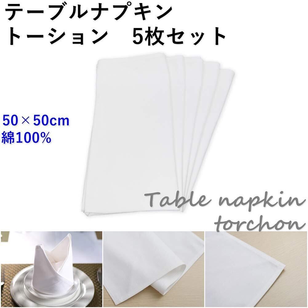 【サイズ】約50cm × 約50cm ※縫製の都合上多少の誤差がございます。【材質】綿 【色】白 【セット内容】5枚組
