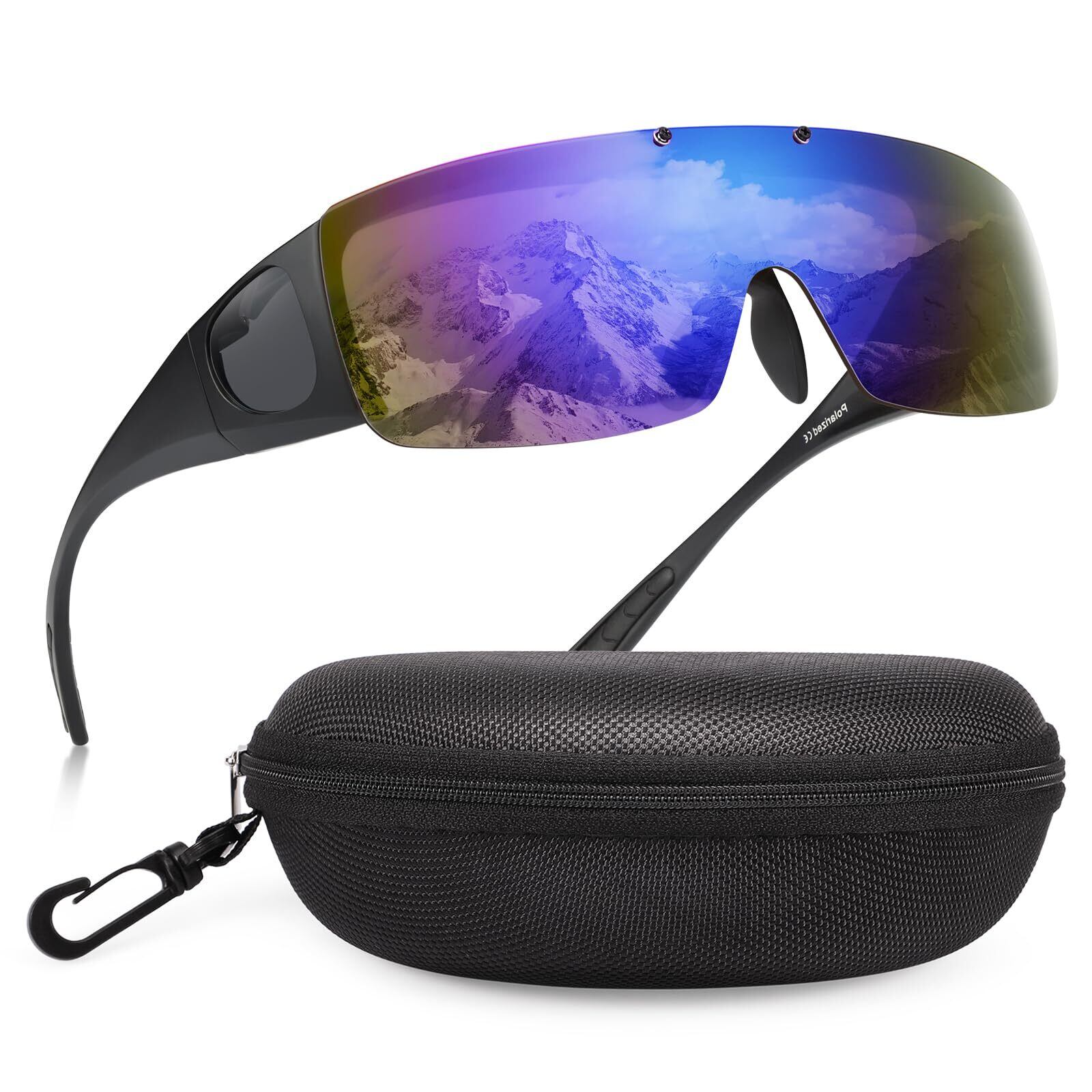 [Br'Guras] オーバーグラス 偏光サングラス メガネをかけたまま対応のサングラス 跳ね上げ式 UV400 紫外線カット サイクリング、釣り、ランニング、野球 格好いいサングラス
