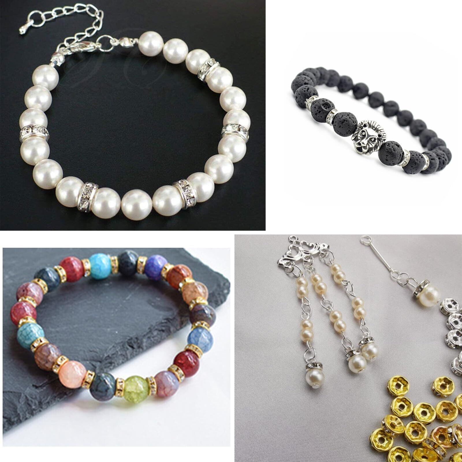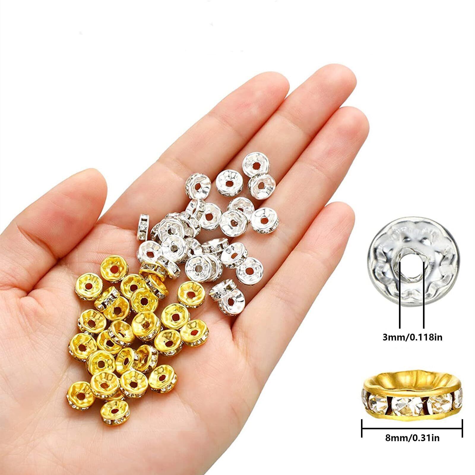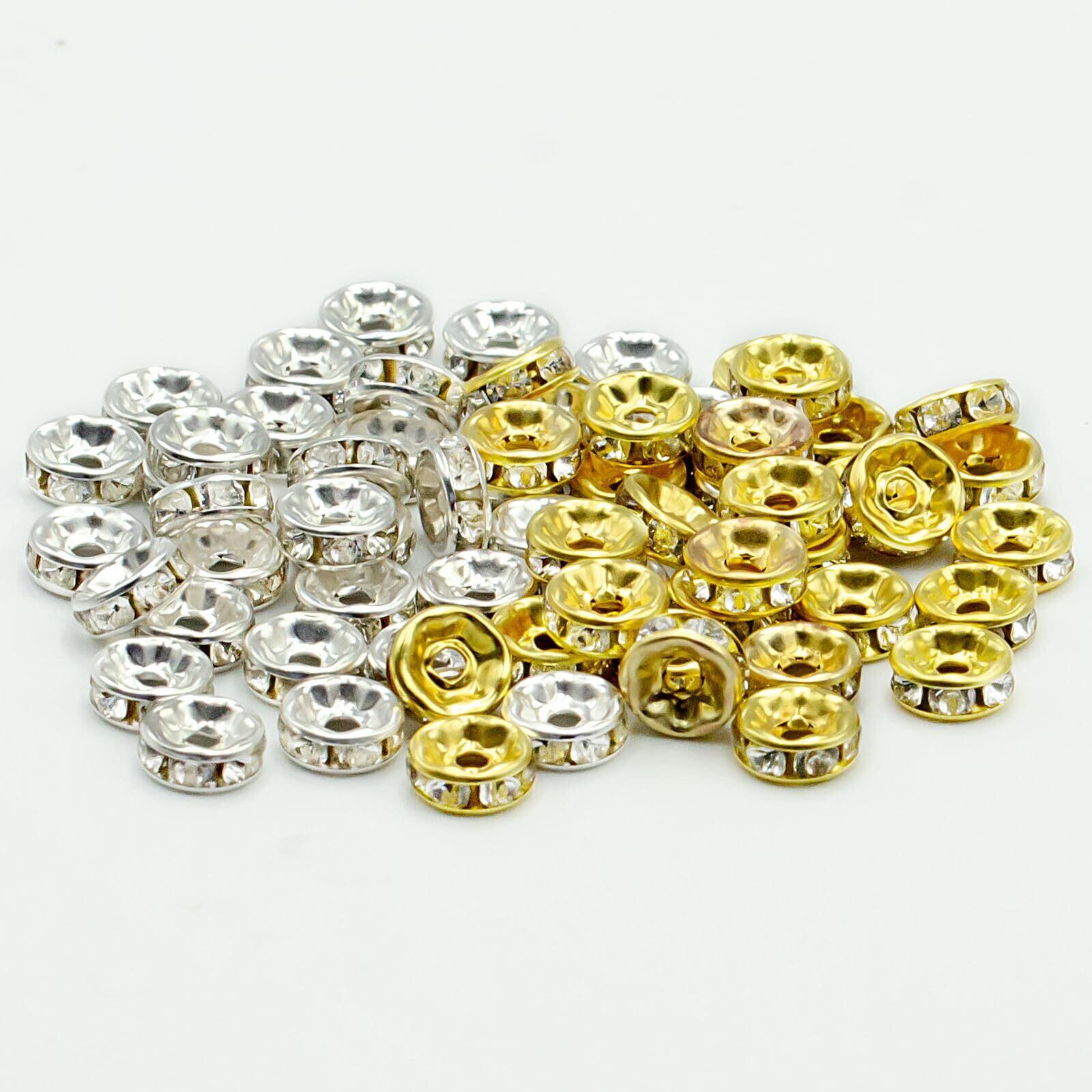 【新春セール】【BEAUTY PLAYER】ロンデル 8mm 平型 200個 ゴールド シルバー 各100個 ラインストーン付き スペーサービーズ メタル ビーズ アクセサリーパーツ ジュエリー 手芸 クラフト用品 手作り素材 DIY材料 (8mm) | gsmshop