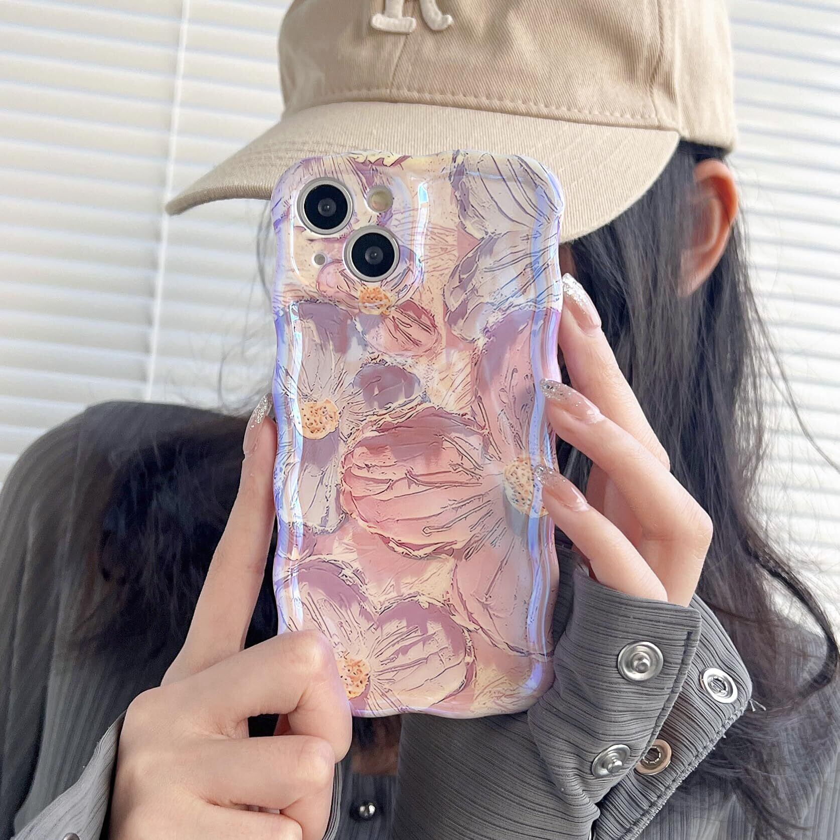 【花柄デザイン ▪ フィット感】背面にカラフルな油絵の花柄、色味が優しく、いつものスマホに上品さをプラス。側面が透明なデザインからiPhone 12 Proカラーが見えるデザインで、本来の美しさと高級感をそのままに映り出し。