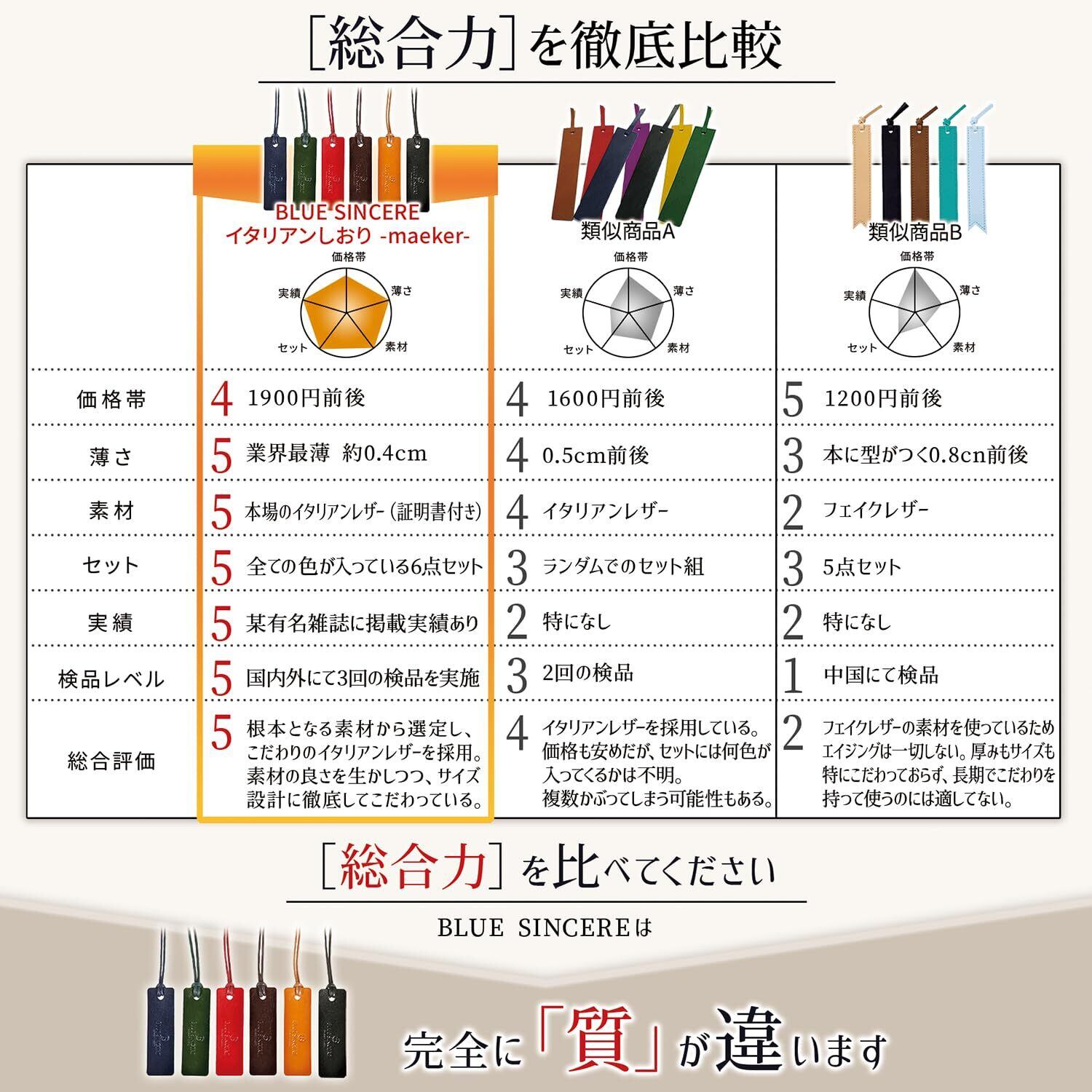 [BLUE SINCERE] しおり 本革 イタリアンレザー ひも付き 読書 本 メンズ レディース ブックマーカー/Mark -マーク- IS1 (6色セット)