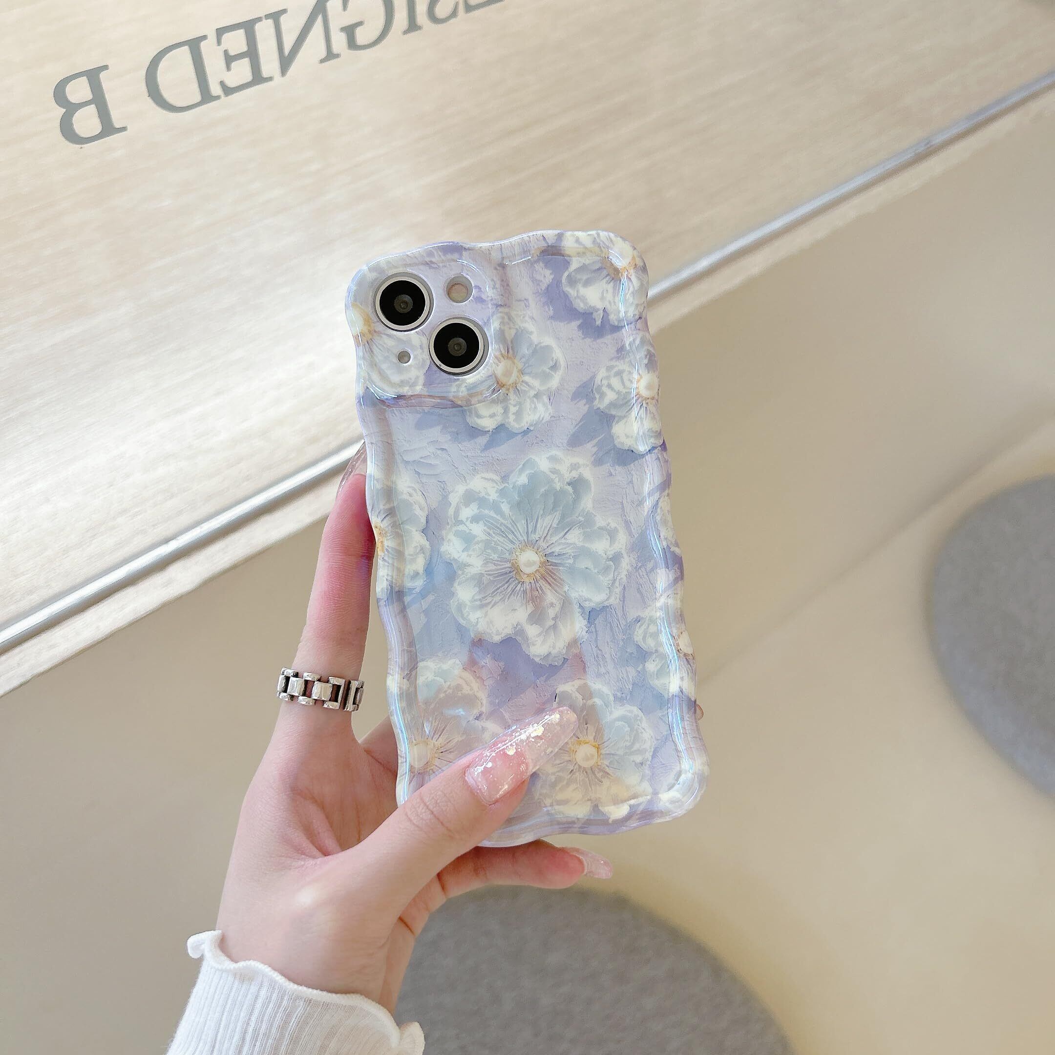 【在庫処分】QLTYPRI iPhone 14ケースTPUカバー おしゃれ 韓国 可愛い 花柄 ウェーブ 薄型 軽量 耐衝撃 スマホケース ワイヤレス充電対応 ストラップホール付き アイフォン14 ケース 6.1インチ 対応 - パープル #2 | gsmshop