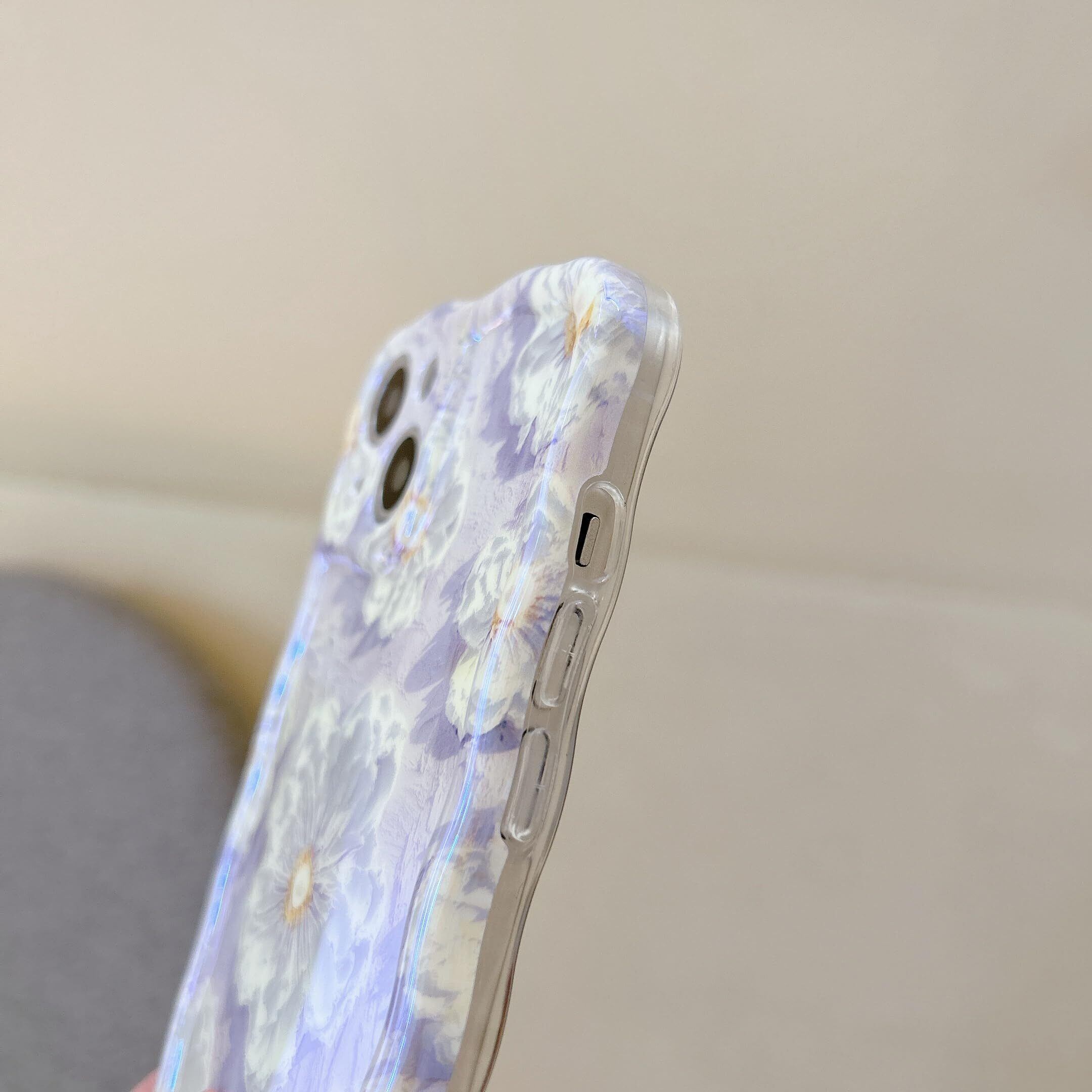 QLTYPRI iPhone 14ケースTPUカバー おしゃれ 韓国 可愛い 花柄 ウェーブ 薄型 軽量 耐衝撃 スマホケース ワイヤレス充電対応 ストラップホール付き アイフォン14 ケース 6.1インチ 対応 - パープル #2