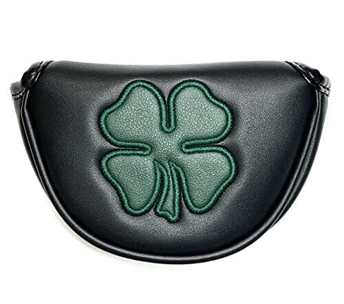 パターカバー ゴルフヘッドカバー オデッセイに対応 レッド小型マレットタイプ対応 マグネット付け クローバー模様 白 緑 黒