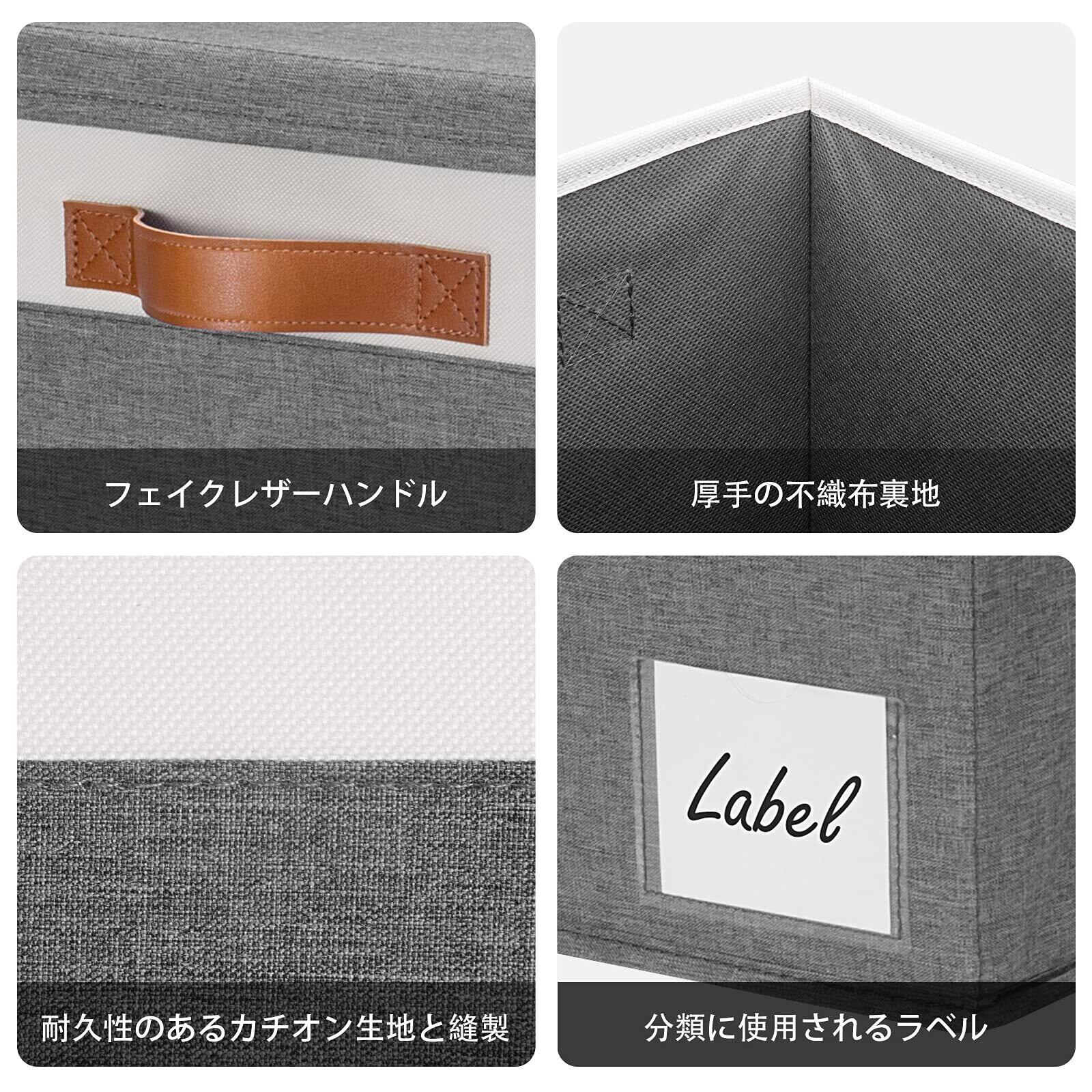『高品質の原材料』収納ボックス 蓋付きは高品質のカチオン生地とポリエステル綿生地でできており、内層は不織布でできており、無臭で耐久性があり。側の3つのしっかり快適に握れる丈夫な合皮レザーの取っ手が付いており、スタイリッシュなだけでなく、収納ボックスの出し入れが便利。