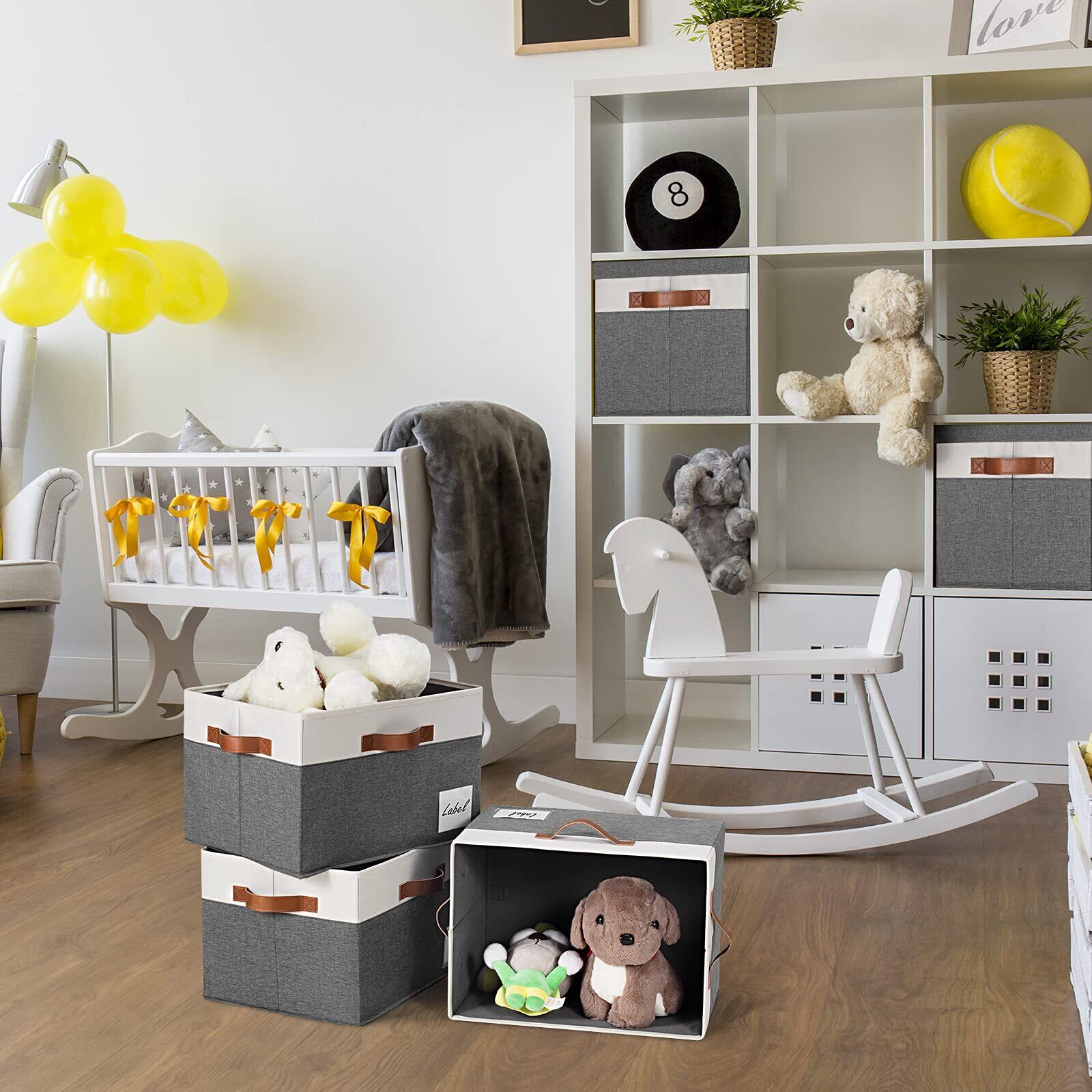 LHZK 収納ボックス 蓋付き 3点セット 折りたたみ式 収納ケース ハンドル付き 分類用ラベル 丈夫なキャンバス生地 ボックス 大容量整理用 カラーボックス (大きい-蓋付き, 蓋付き - グレー/ホワイト)