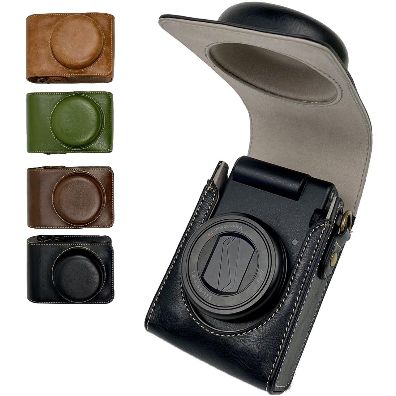 elfoLiz カメラケース SONY (ソニー) VLOGCAM ZV-1 / ZV-1F / ZV-1II レトロ レザー ケース カメラ バッグ ZV1 軽量 おしゃれ 衝撃吸収 傷防止 ショルダーストラップ付き (ブラック)