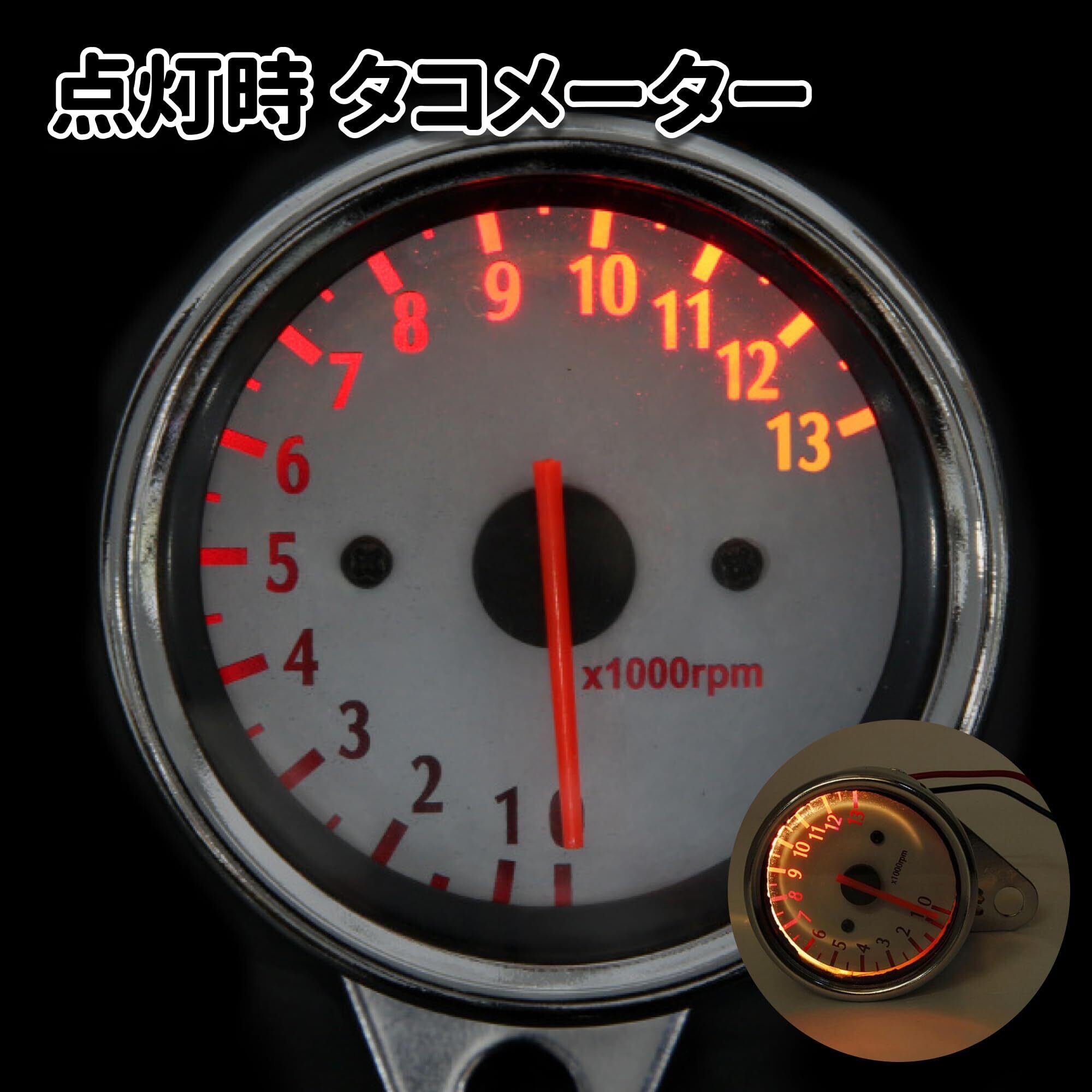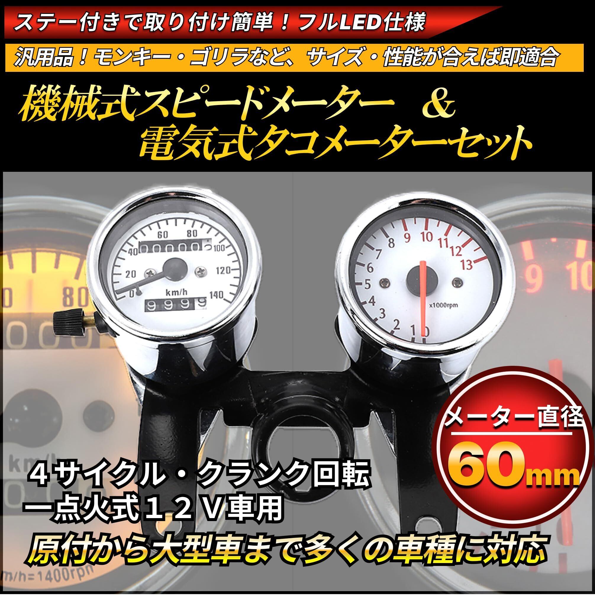 【商品説明】 原付から大型車まで愛車のドレスアップとして、そして、スピードメーター&タコメーターの交換用にご利用頂けます。モンキー・ゴリラなどの車種に最適なメーター直径60mmサイズ。汎用品のため、12V車であればマグマ50やエイプなど、原付から大型車まで幅広く利用できます。各メーターは、昼夜共に視認性が高く、夜間でも見えやすいバックライト付きです。