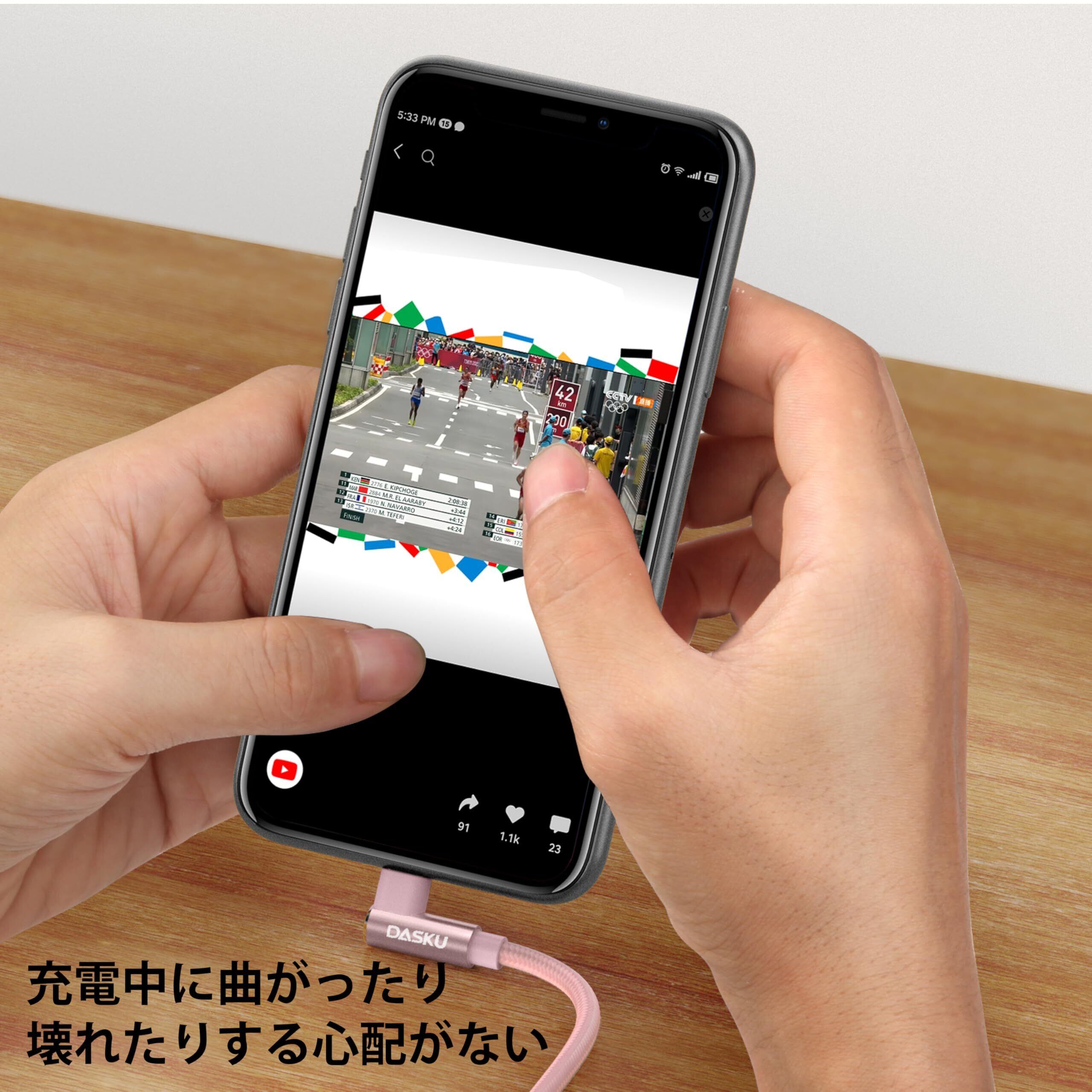 ライトニングケーブル L字: 従来のケーブルと異なり、90度に曲がって「l字型」となっているので、充電の時には、ゲームの操作や動画を見るのは邪魔されない、コンセントやパソコンに繋いでも、ケーブルを無理やりに曲げる必要がなしで、スマホを横向きにして充電したり、ゲームしたり、スタンドやカバンに置いても便利になります。