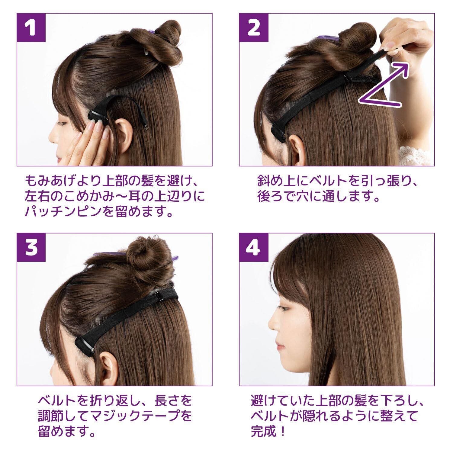 4.避けていた上部の髪を下ろし、ベルトが隠れるように整えて完成!