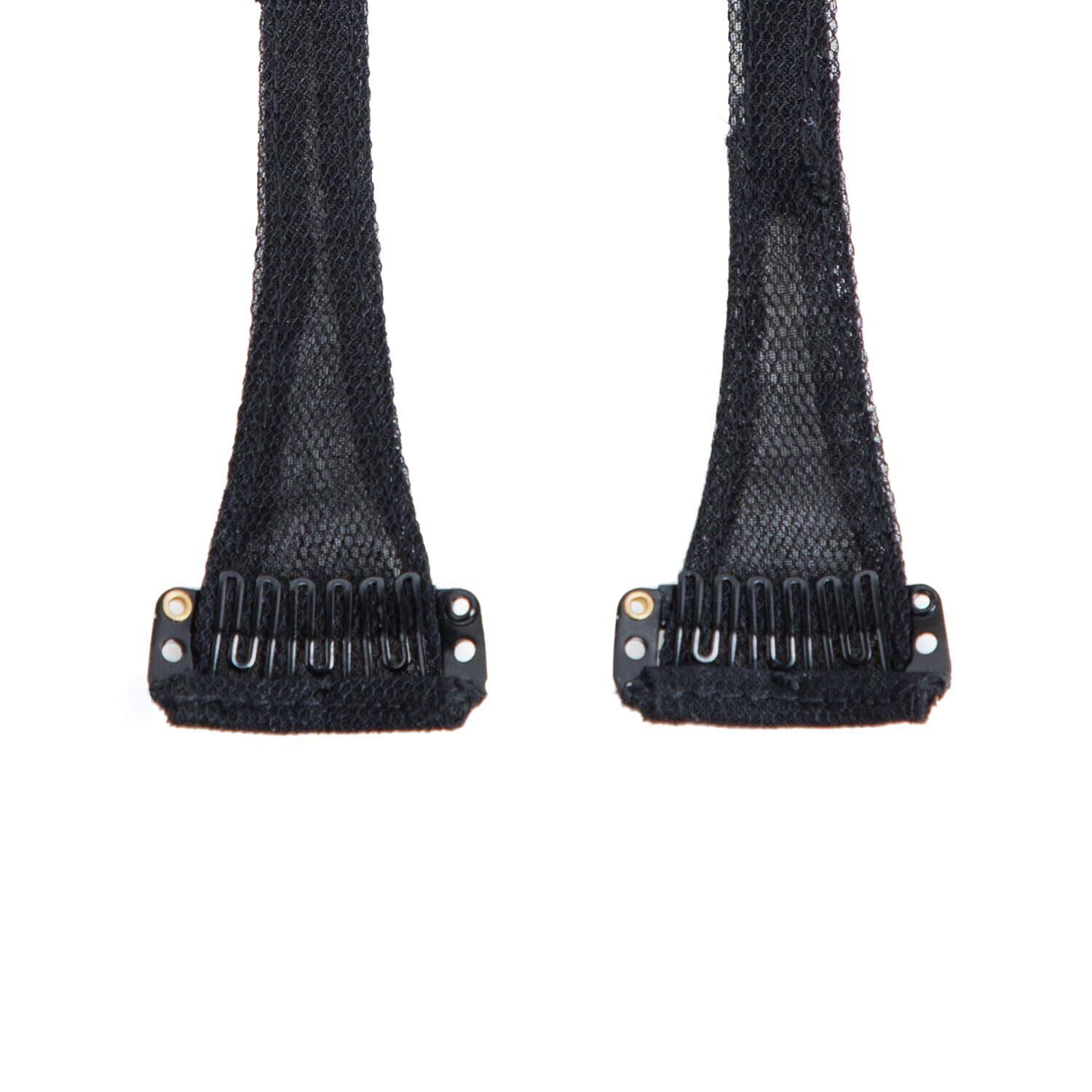 1.もみあげより上部の髪を避け、左右のこめかみ~耳の上辺りにパッチンピンを留めます。