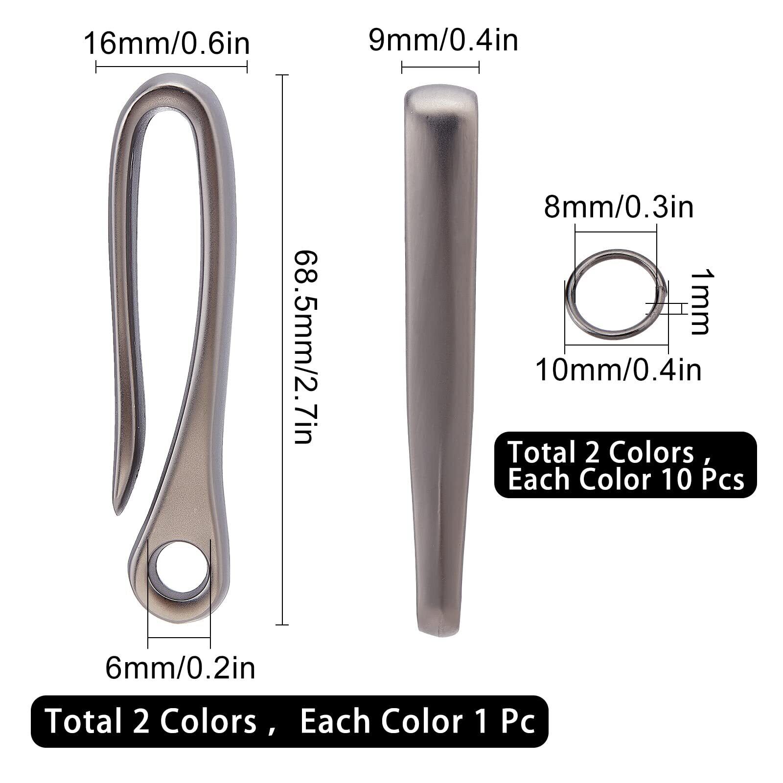 【サイズ】:キーフック*2個2色:各1個で、合計2個です。キーフックのサイズは同じ:68.5*16*9mmで、穴:6mmです。ジャンプリンク:10*1mmです。収納ケース*1つです。