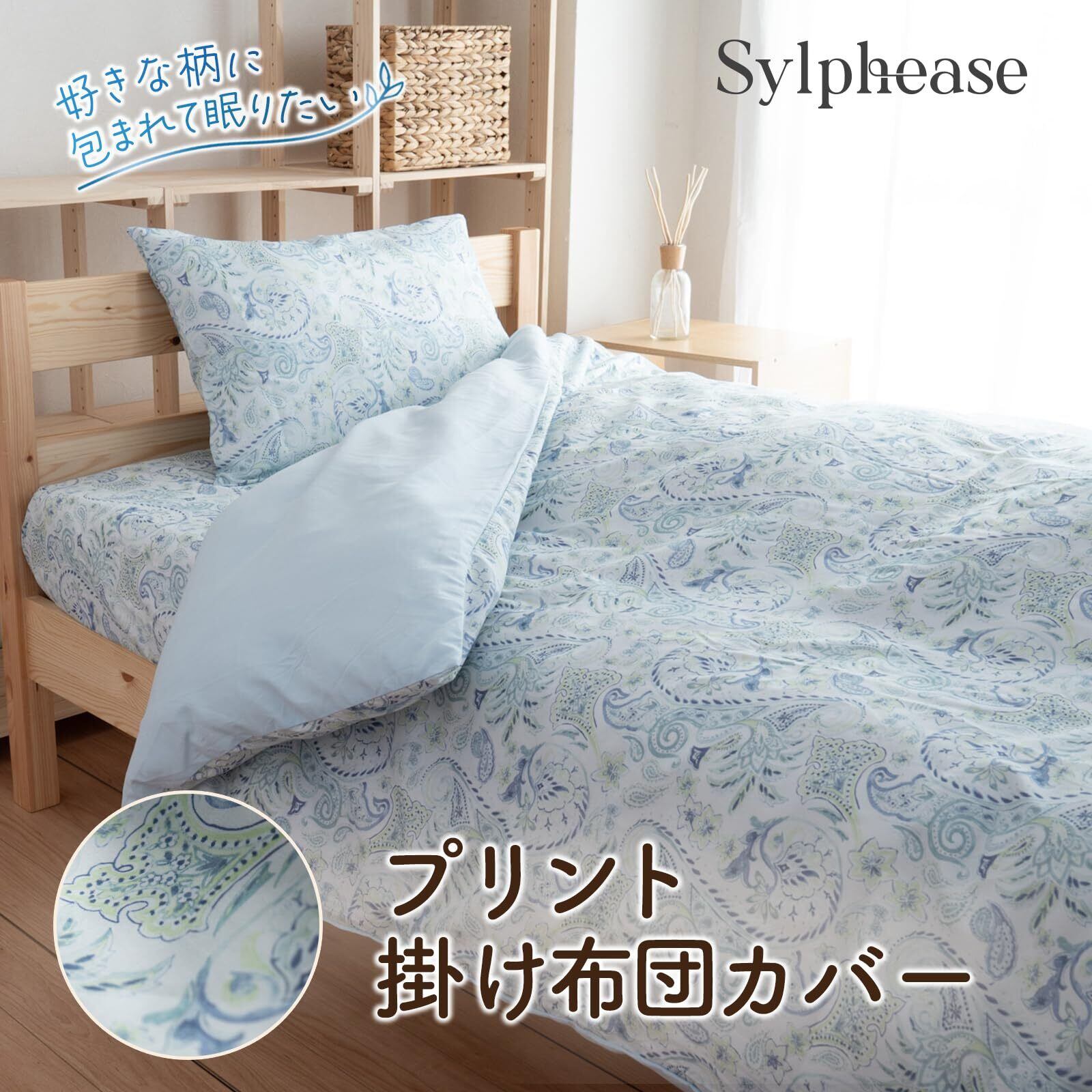 シルフィーズ 掛けふとんカバー おしゃれ かわいい 北欧 150×210cm かけ布団カバー 寝具 羽毛布団カバー ずれ防止 柄 春 (ペイズリー(ブルー), シングル)