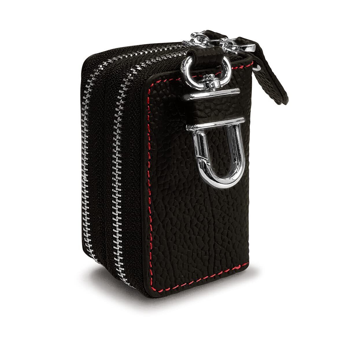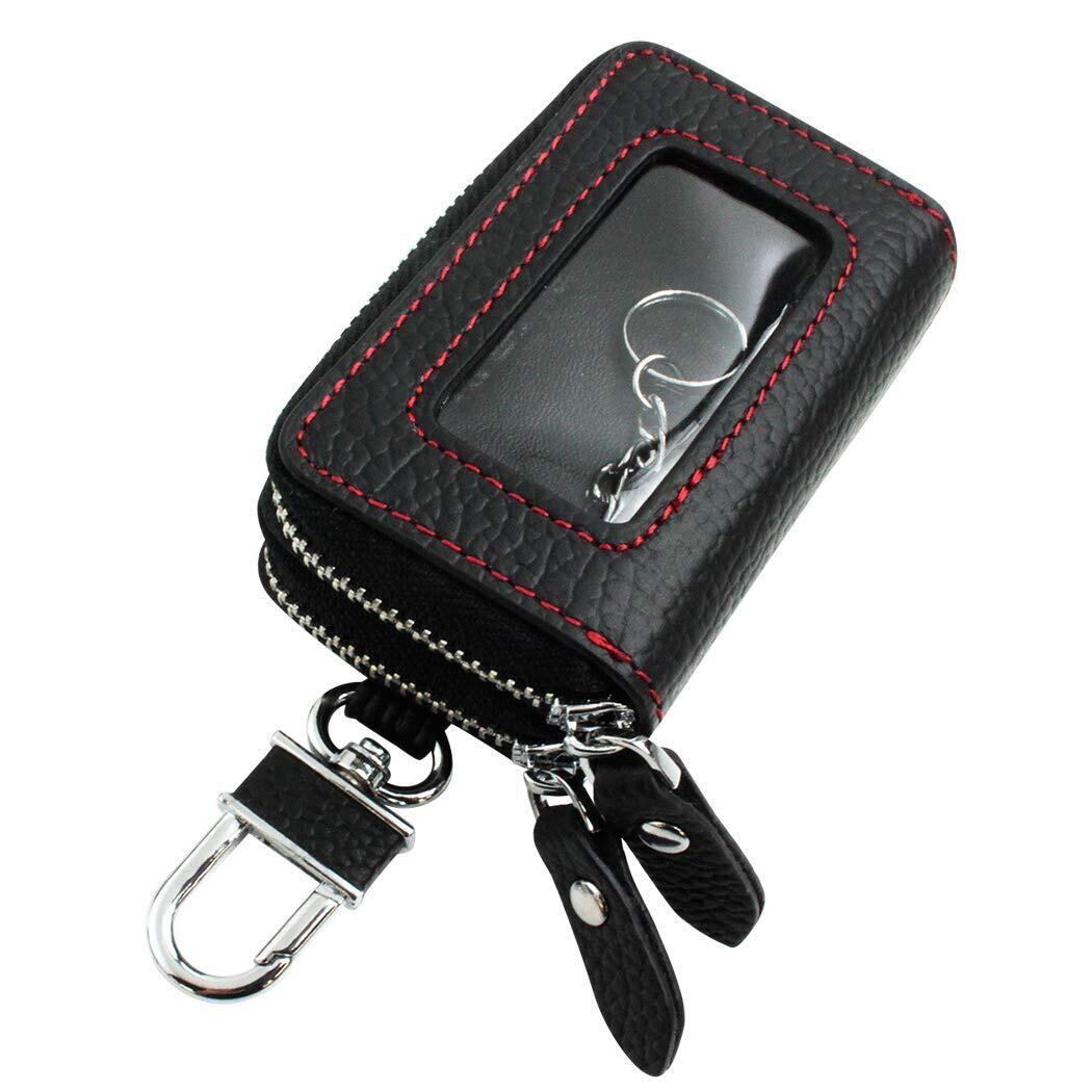 【AWESOME/オーサム】 スマートキーケース クリア窓付きダブルファスナータイプ ブラック×レッドステッチ ASK-CMW002R