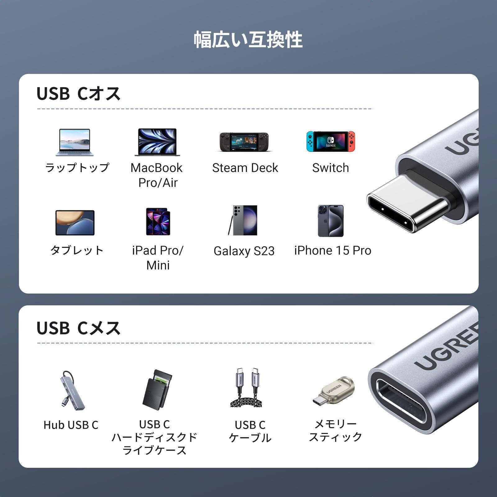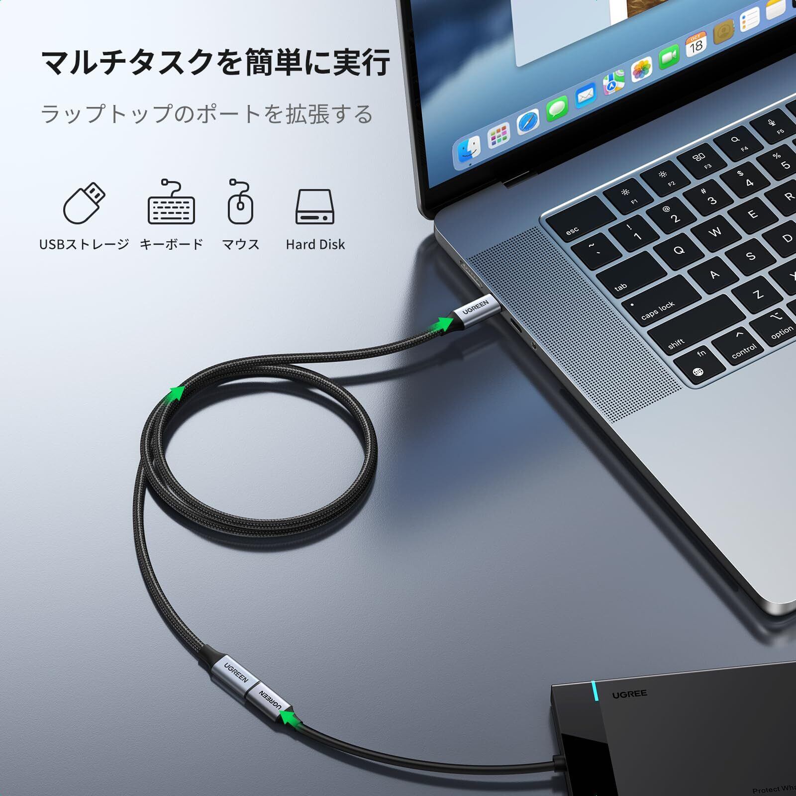 UGREEN USB Type C 延長ケーブル タイプc延長コード 【4K60Hz映像出力】 PD 100W/5A USB 3.2 Gen 2規格 10Gbps高速転送 Thunderbolt3対応 双方向転送 iPhone15/Galaxy S24/Mac Book/iPad/Switch Surface等USB C機器に対応 1M