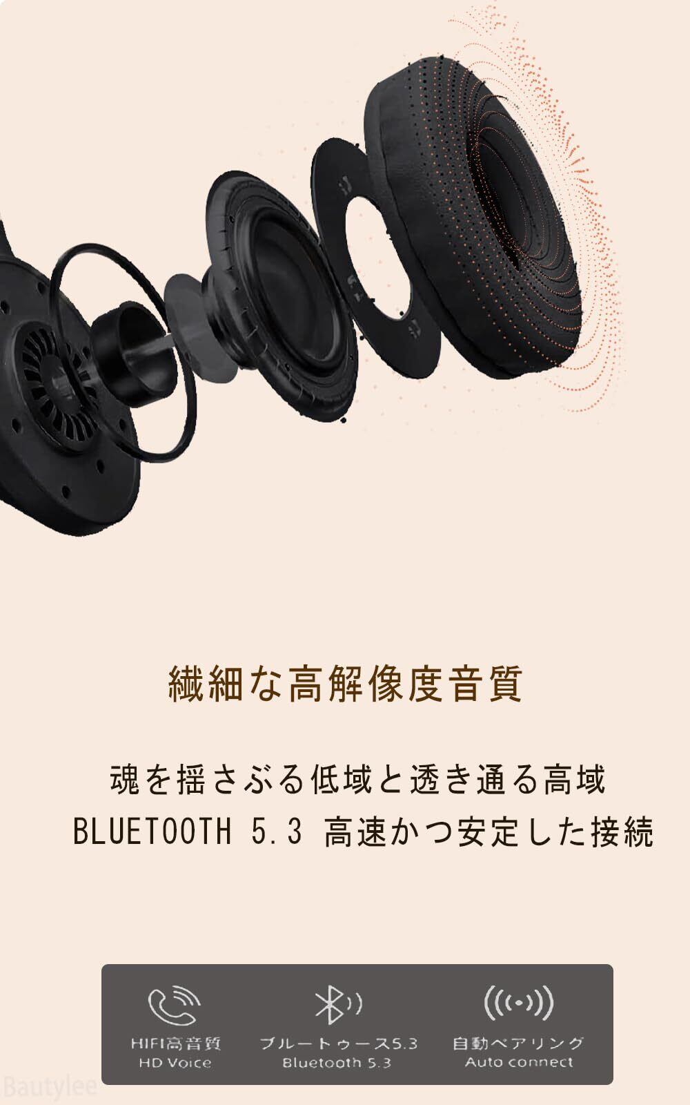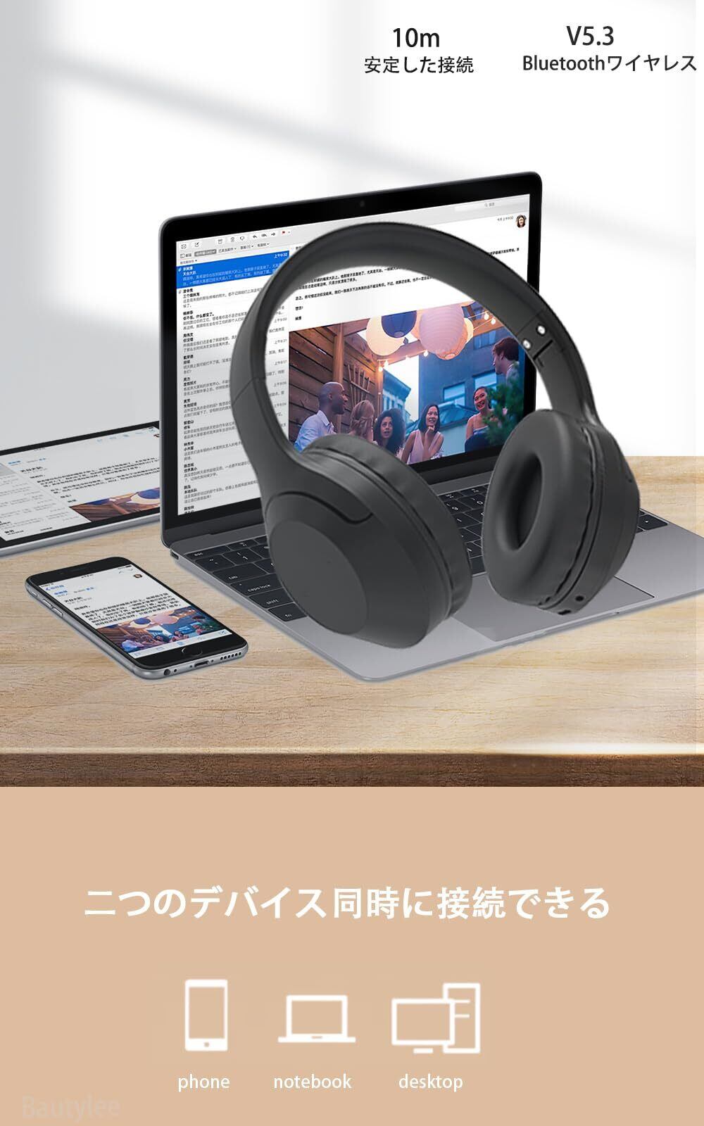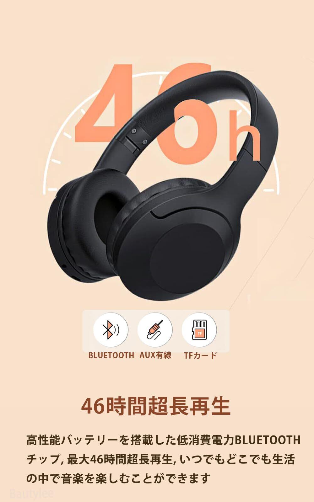 Bautylee ワイヤレスヘッドホン Bluetooth 5.3 オーバーイヤーヘッドホン/HiFi ステレオ重低音/遅延なし/密閉型/軽量/折り畳み可能/内蔵マイク付き/無線 3.5mm AUX有線両用/最大46時間連続再生/日本語取扱説明書付属(ブラック)