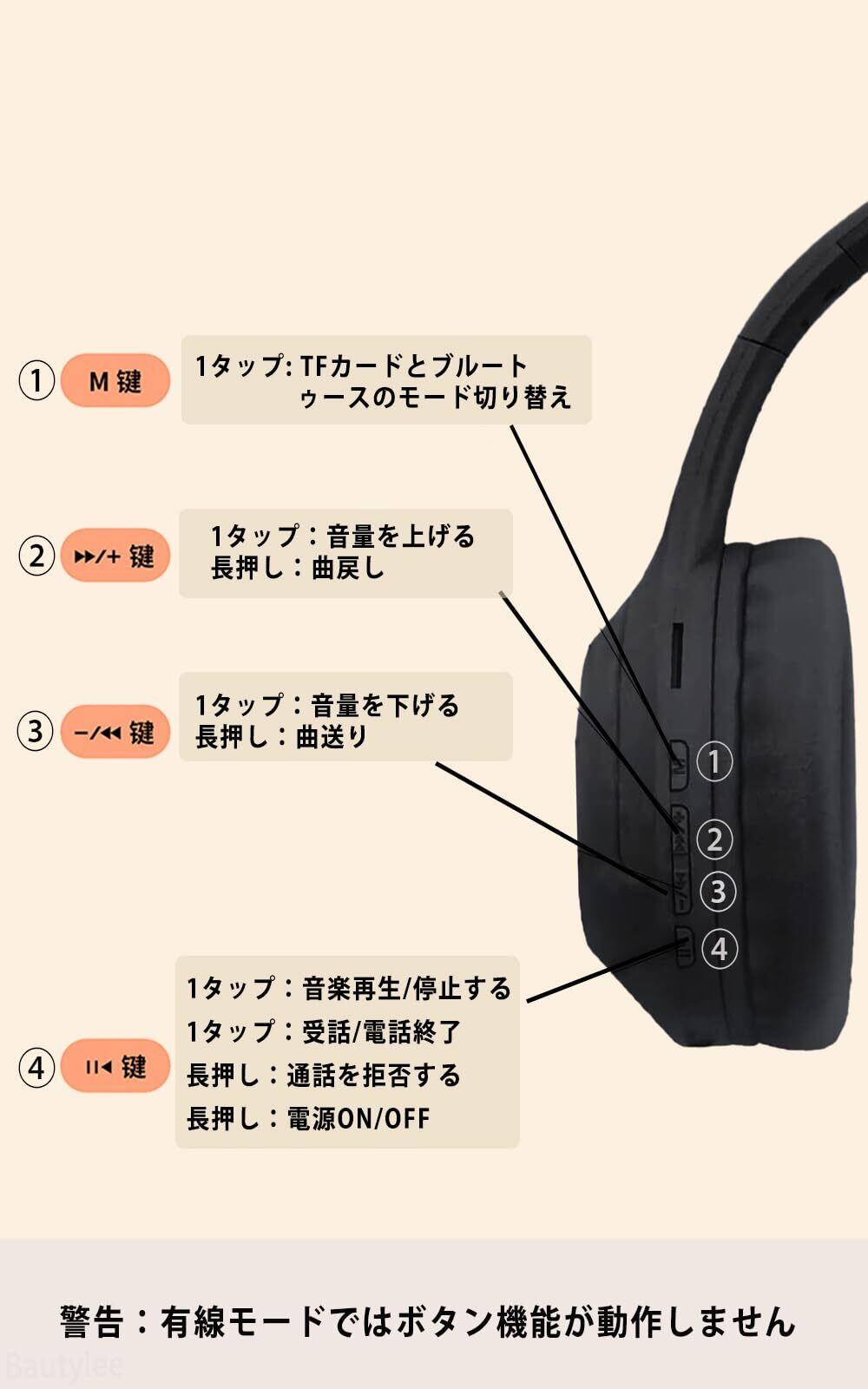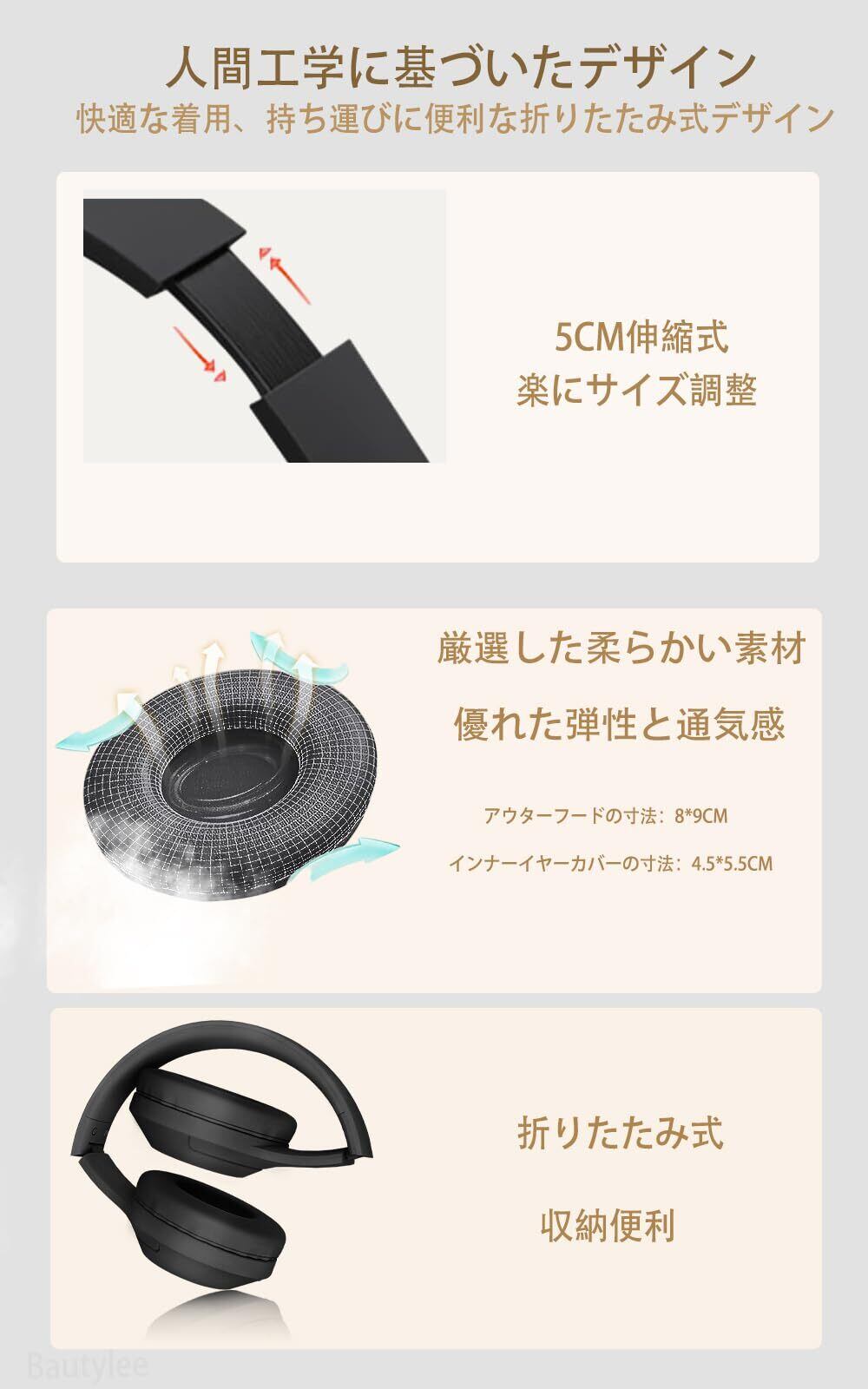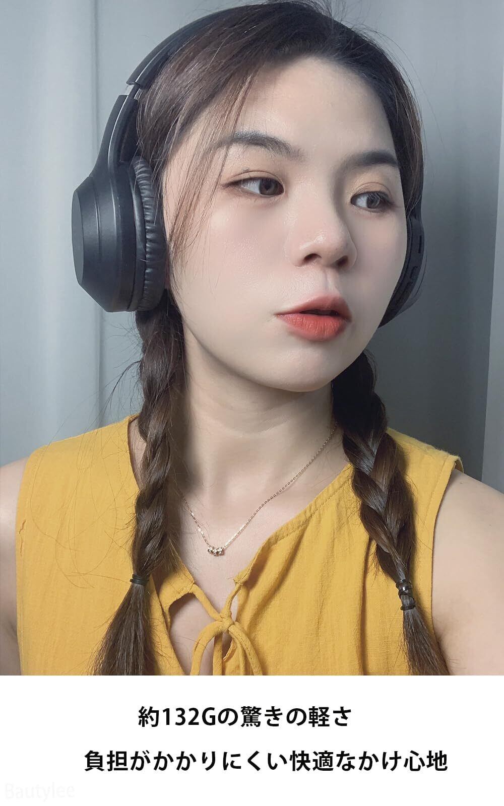 Bautylee ワイヤレスヘッドホン Bluetooth 5.3 オーバーイヤーヘッドホン/HiFi ステレオ重低音/遅延なし/密閉型/軽量/折り畳み可能/内蔵マイク付き/無線 3.5mm AUX有線両用/最大46時間連続再生/日本語取扱説明書付属(ブラック)
