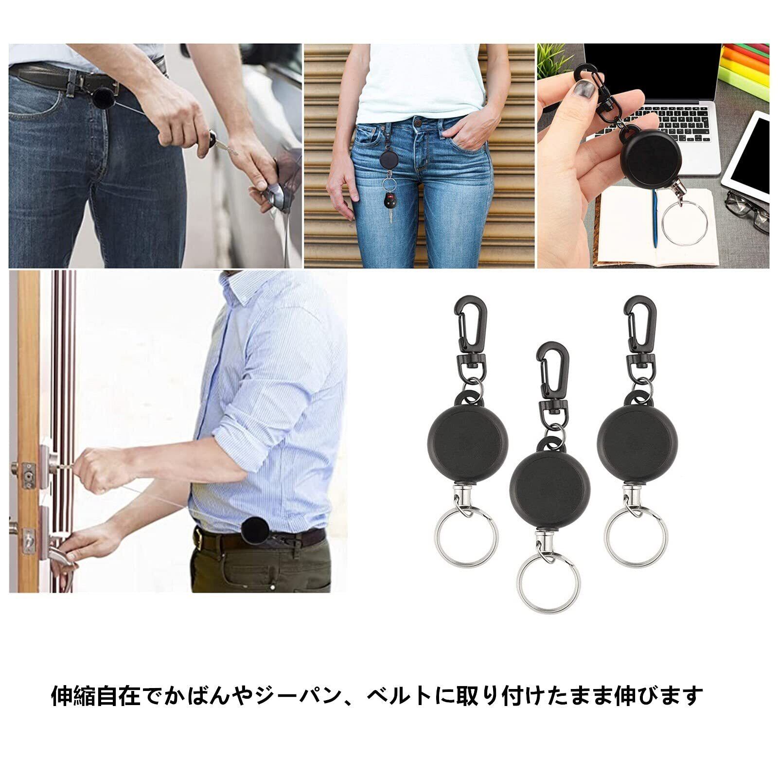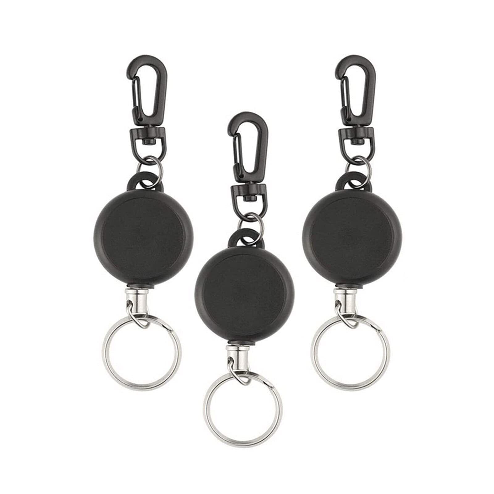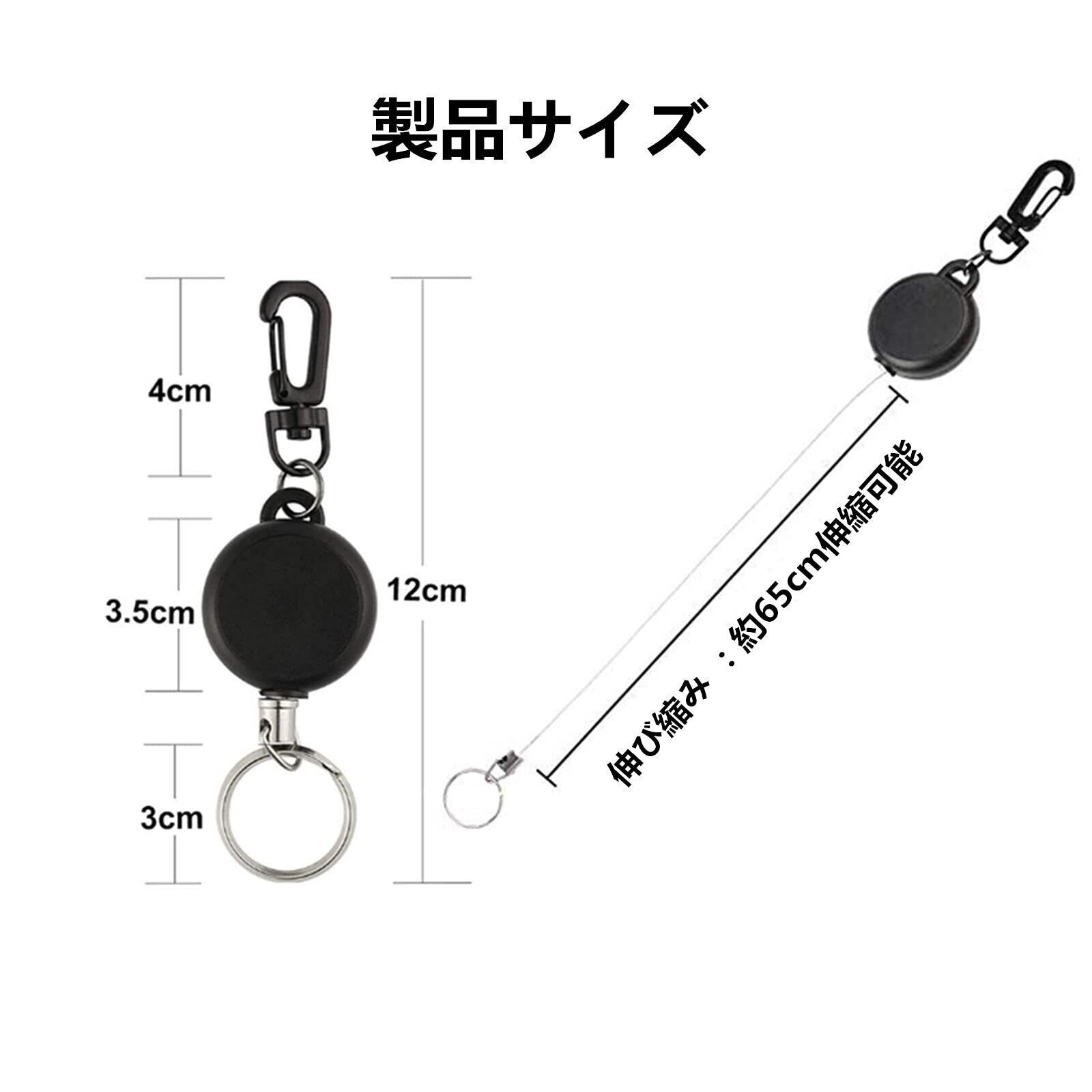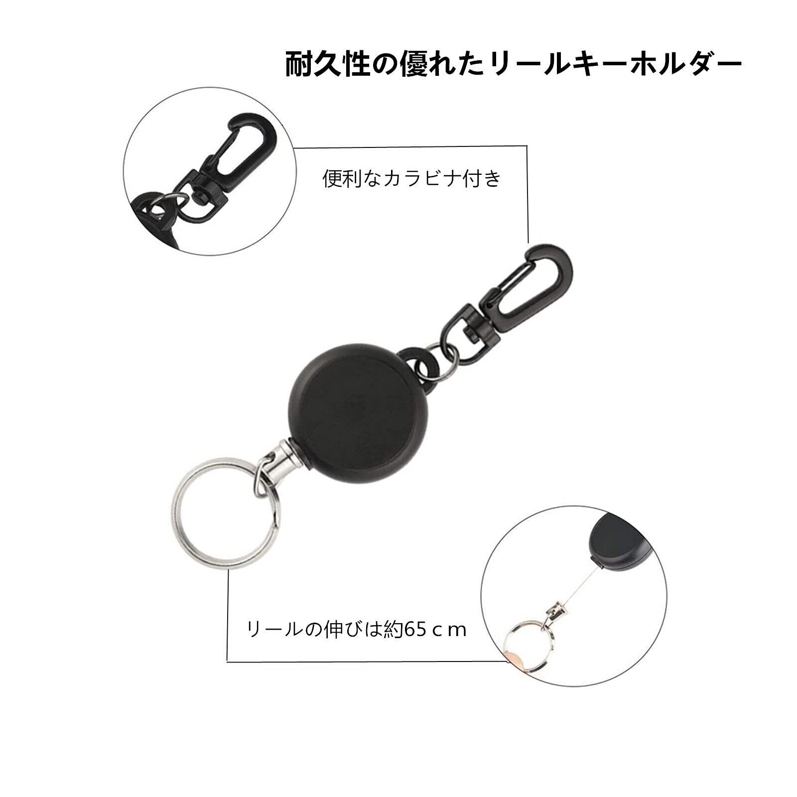 [YFFSFDC] リールキーホルダー カラビナ付 リールストラップ 伸縮自在 紛失防止 キーホルダー ブラック 3個セット