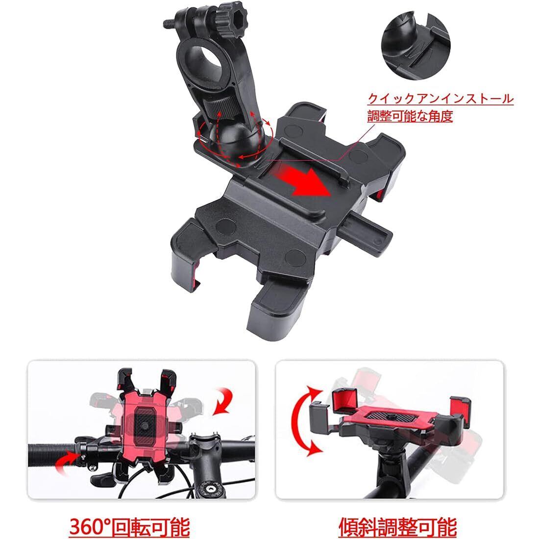 【構造が強固で安定している】4爪のフォークで携帯電話を固定し、ギアを連動させてしっかり固定する。強い振動でも落ちません。滑り止めPEは高い密着度を実現し、砂道と段差のある場所で受ける大振動を吸収し、スマートフォンへの衝撃を最大限に抑えることができる。<br>360度自由回転:好みに応じて360度調節可能。また、スマートフォンの四隅を固定する方式を採用しているため、スタンドで音量や電源ボタンの操作を調節することもでき、装着しながら充電ケーブルを挿入したり、携帯電話の電池などを使って充電することもできる。普通の走行やGPSナビゲーションに適しています。