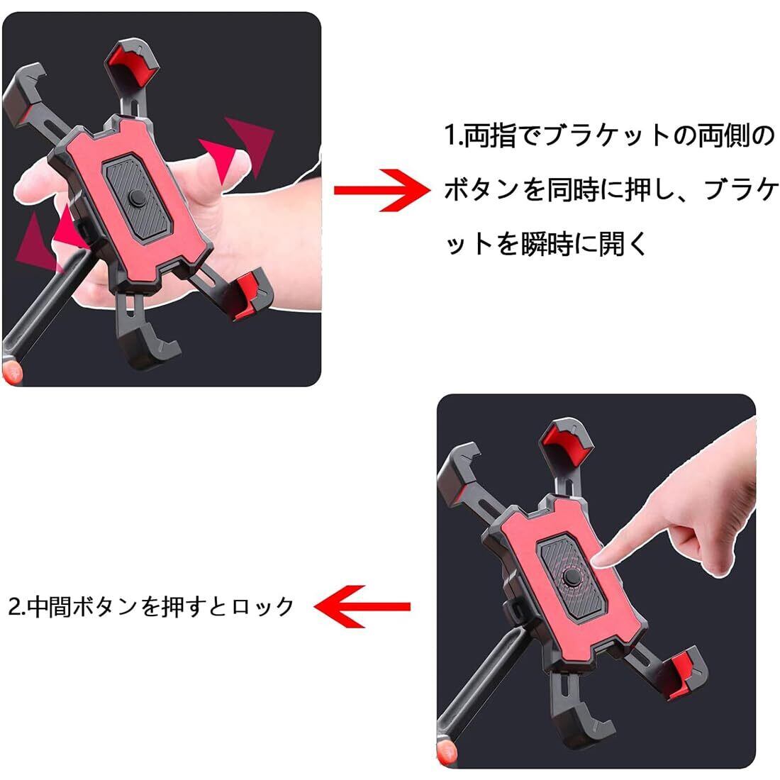 360度自由回転:好みに応じて360度調節可能。また、スマートフォンの四隅を固定する方式を採用しているため、スタンドで音量や電源ボタンの操作を調節することもでき、装着しながら充電ケーブルを挿入したり、携帯電話の電池などを使って充電することもできる。普通の走行やGPSナビゲーションに適しています。