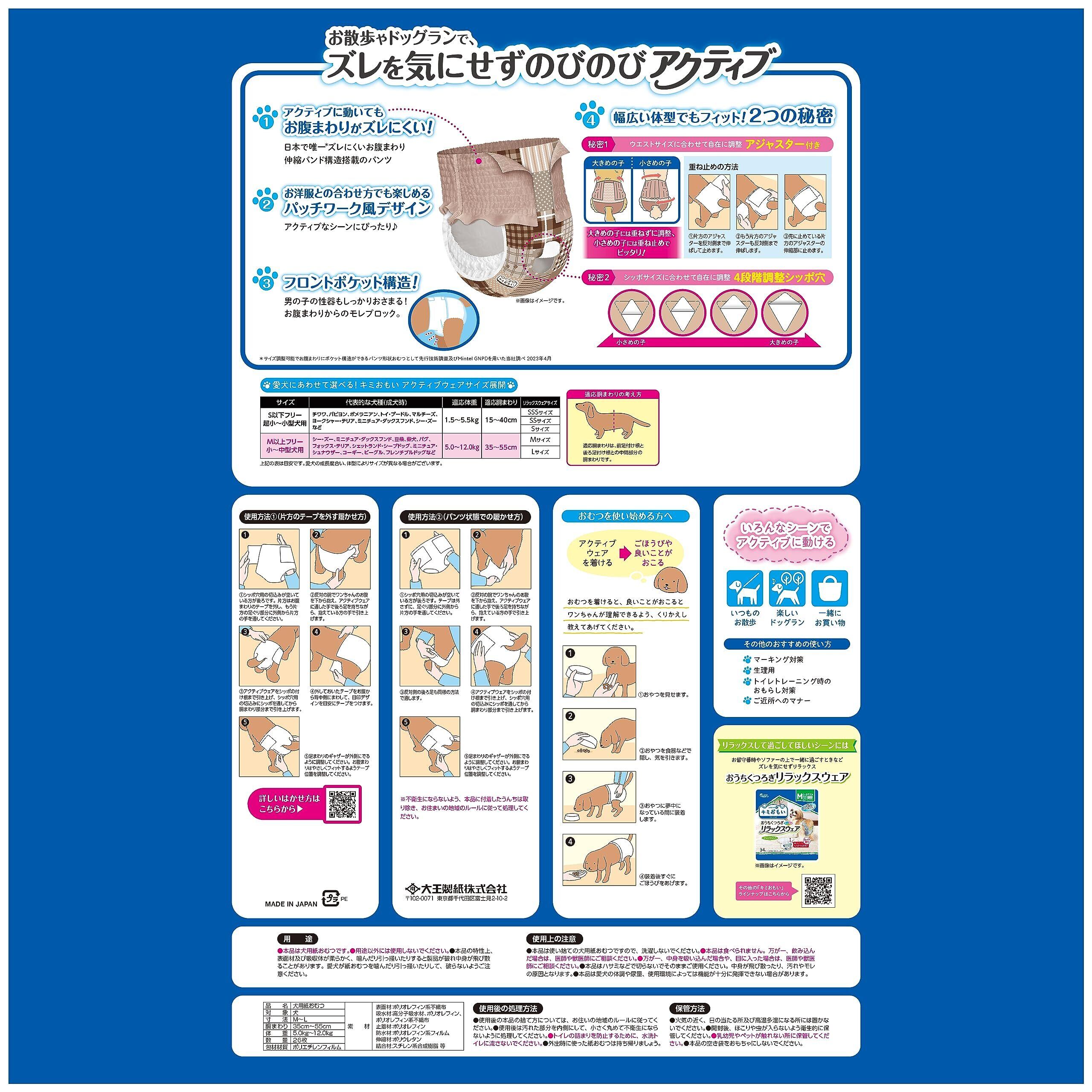 お外向けパンツタイプの犬用紙おむつ。お散歩やドッグランで、ズレを気にせずのびのびアクティブ。●伸縮バンド構造でずれにくい、パンツタイプ。おなか周りの伸縮バンド構造でずれにくい。足まわりフィット構造で動きやすい。●サイズ調整が自在、幅広い体形にフィット。お腹まわりアジャスターで大きめの子は重ねずに調整、小さめの子は重ね止めでぴったり。ミシン目付きの4段階調整しっぽ穴で、ワンちゃんのしっぽサイズにあわせて自在に調整。【使用シーン】・いつものお散歩・一緒にお買い物・楽しいドッグラン