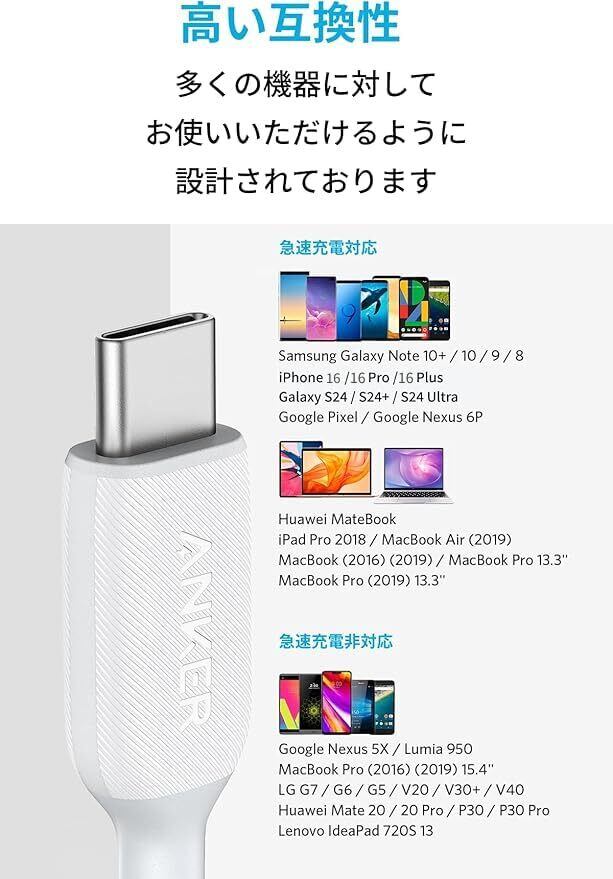 Anker PowerLine III USB-C & USB-C 2.0 ケーブル (0.9m ホワイト) 超高耐久 60W USB PD対応 iPhone 16 / 15 MacBook Pro/Air iPad Pro Galaxy 等対応