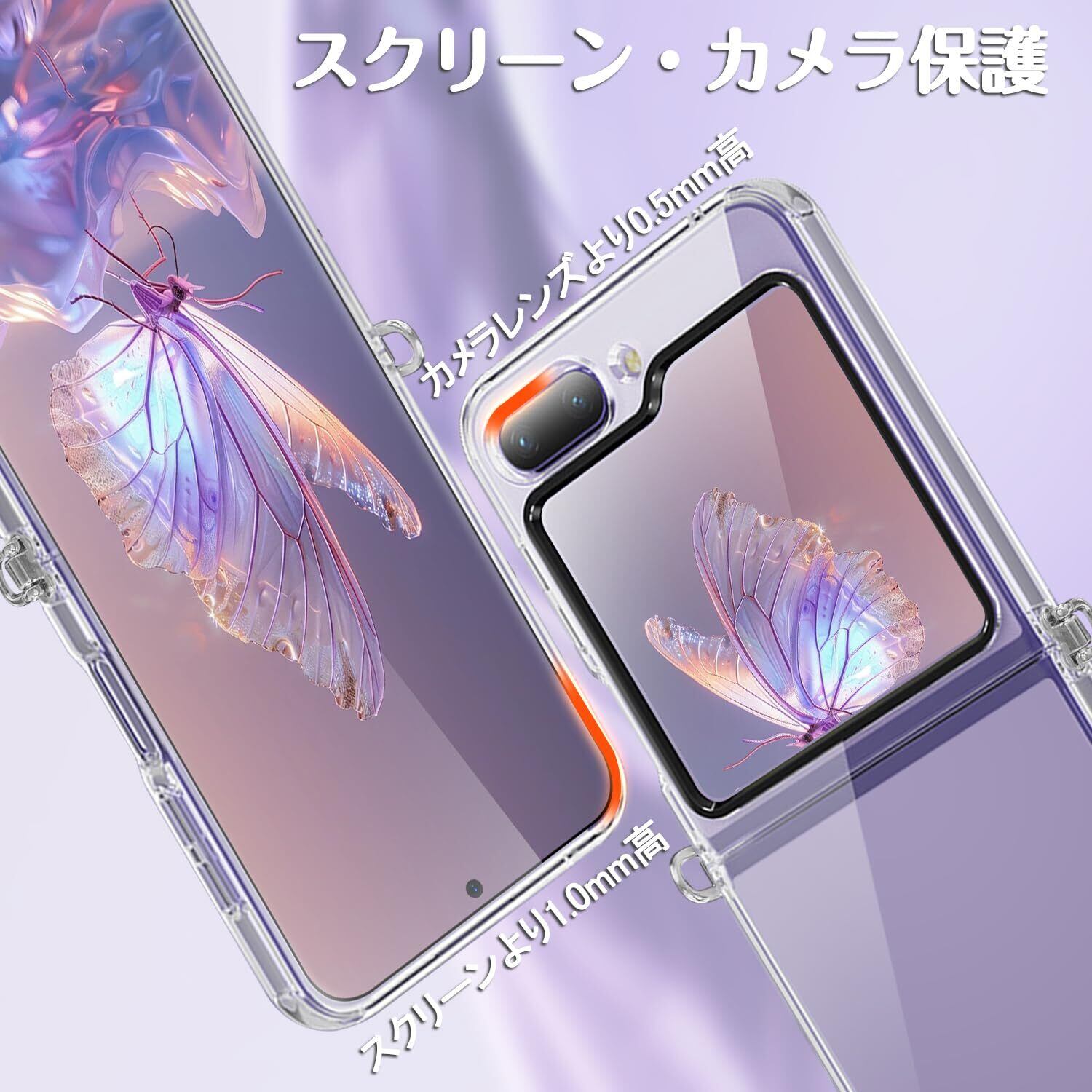 Galaxy Z Flip5 ケース クリア スマホショルダーストラップ用ホール付き TPU 薄型 軽量 全面保護 ギャラクシー Z Flip 5 SCG23/SC-54D カバー 専用 黄変防止 耐衝撃 ケース 滑り止め 落下防止 折りたたみ ワイヤレス充電対応 Galaxy Z Flip5 用 携帯カバー