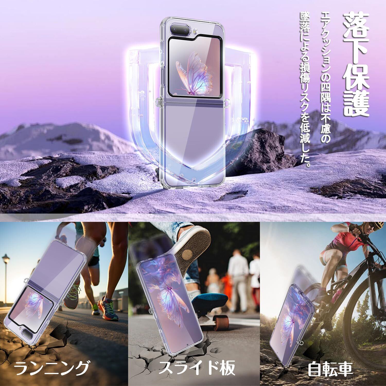 【 高い透明度 - 抜群のフィット 】透明度が高く、本体の鮮やかな色をそのまま映し出すことができ、Galaxy Z Flip5のオリジナルのカラーを損ねません。ケースの端はダイヤモンドカットプロセスを施すことでより洗練された美しい外観となっています。