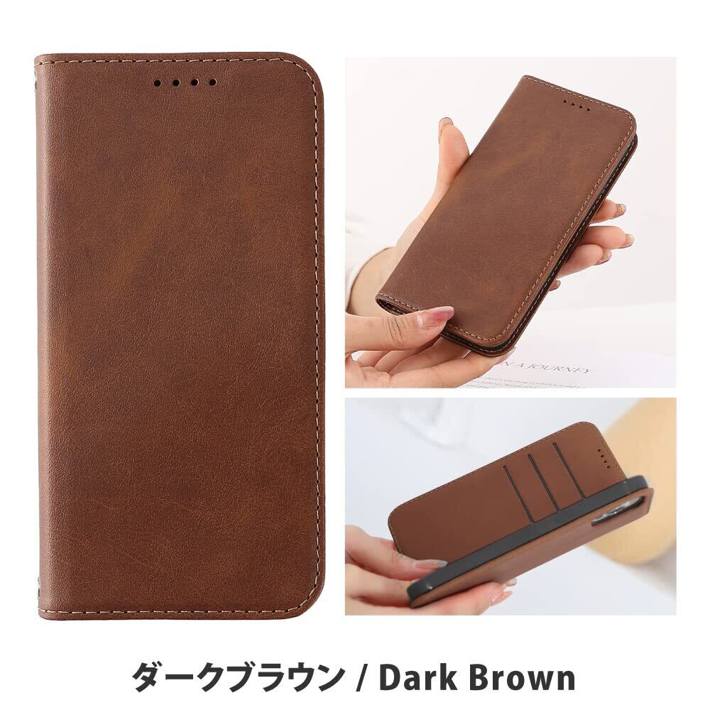 HanaRo iPhone12/12Pro ダークブラウン PUレザー 手帳型ケース ベルトなし マグネット アイフォン ケース カバー iPhone12ケース 12Proケース カード収納