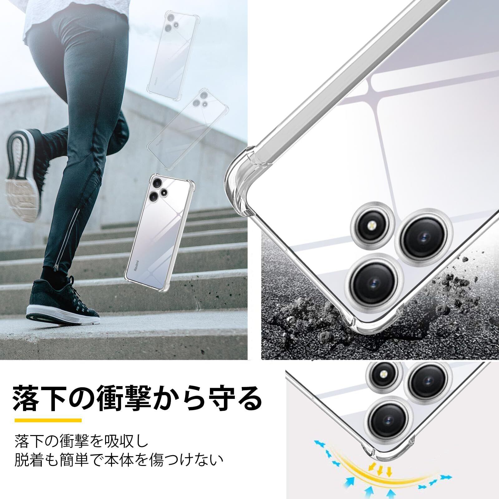 Redmi 12 5G ケースクリア TPU 薄型 軽量 耐衝撃 米軍MIL規格取得 滑り止め 黄変防止 防塵 一体型 人気 携帯カバー(クリア)