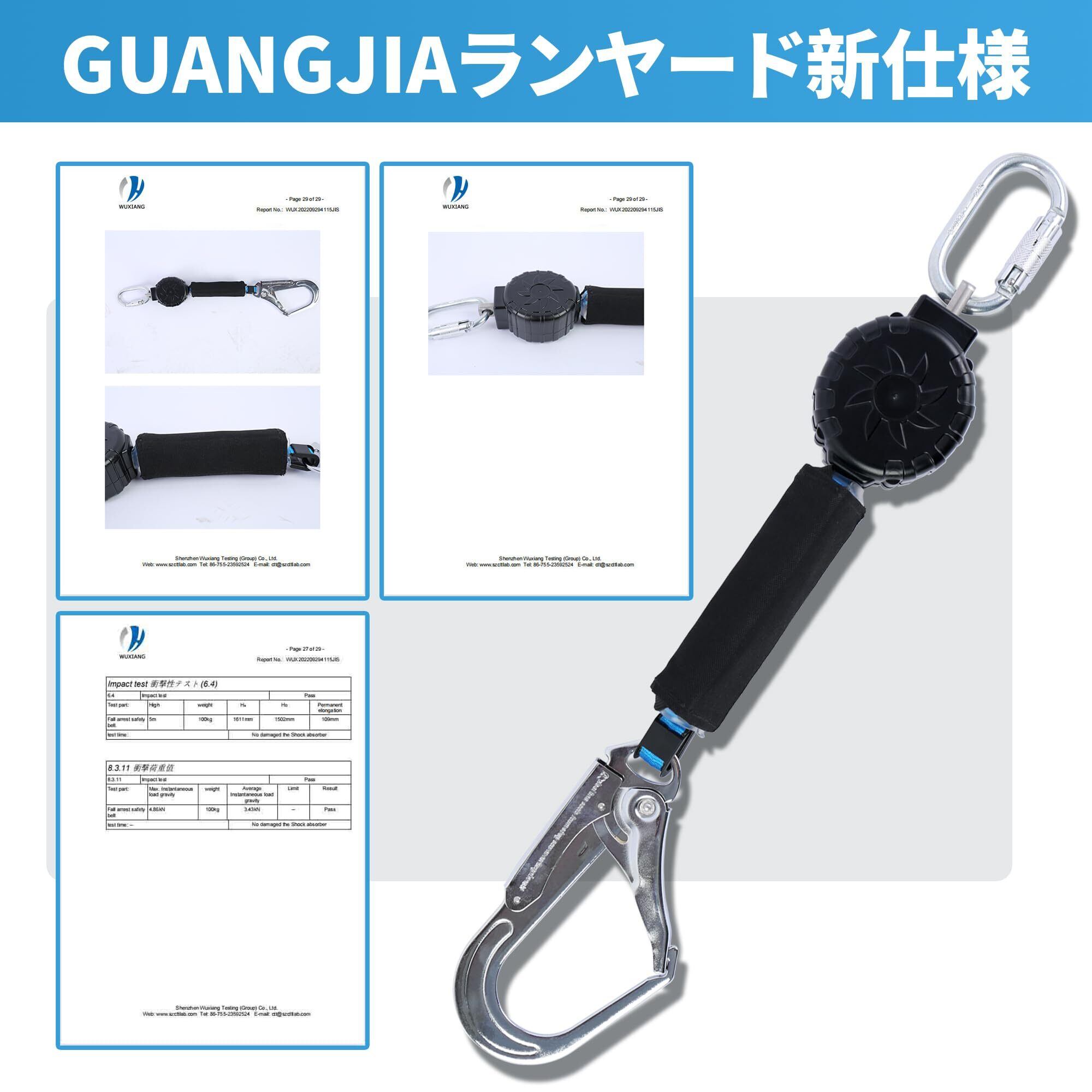[GUANGJIA] ランヤード 巻き取り式ランヤード 安全帯 墜落制止用器具ランヤード ロック装置付き巻取器タイプ1ランヤード 型 フルハーネス型/胴ベルト型兼用 対応 軽量フルハーネス