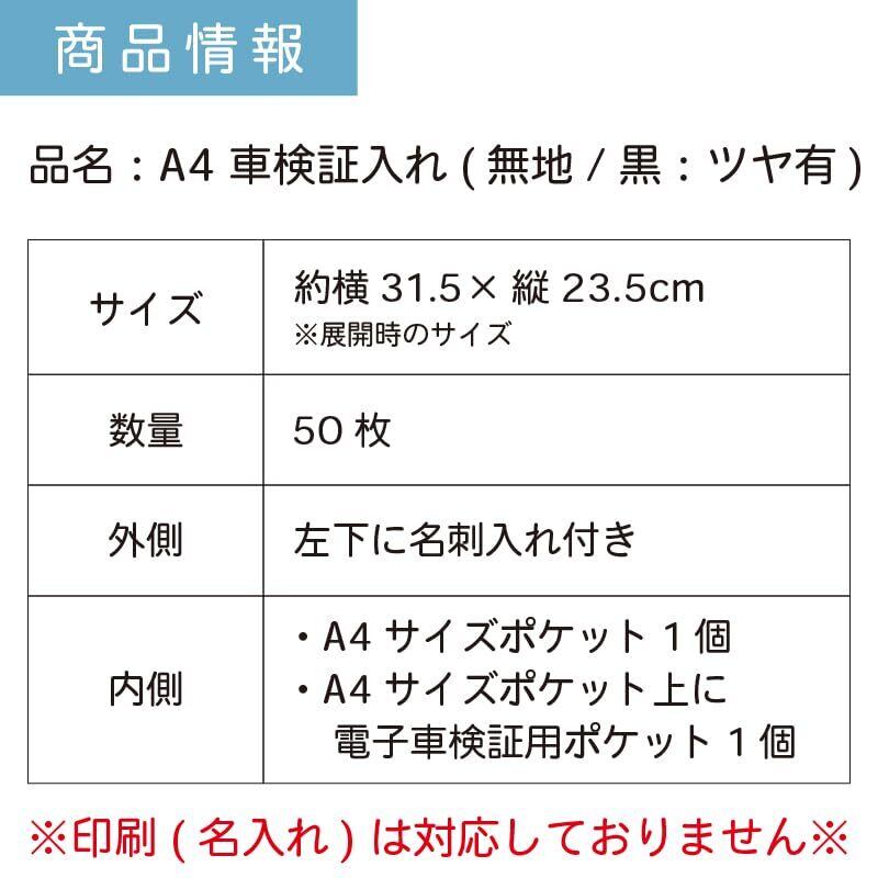 A4 電子車検証対応 車検証入れ 50枚セット 無地 名刺入れ A4ポケット 電子車検証 | 名入れ無し 車検証入 (ブラック(ツヤあり))