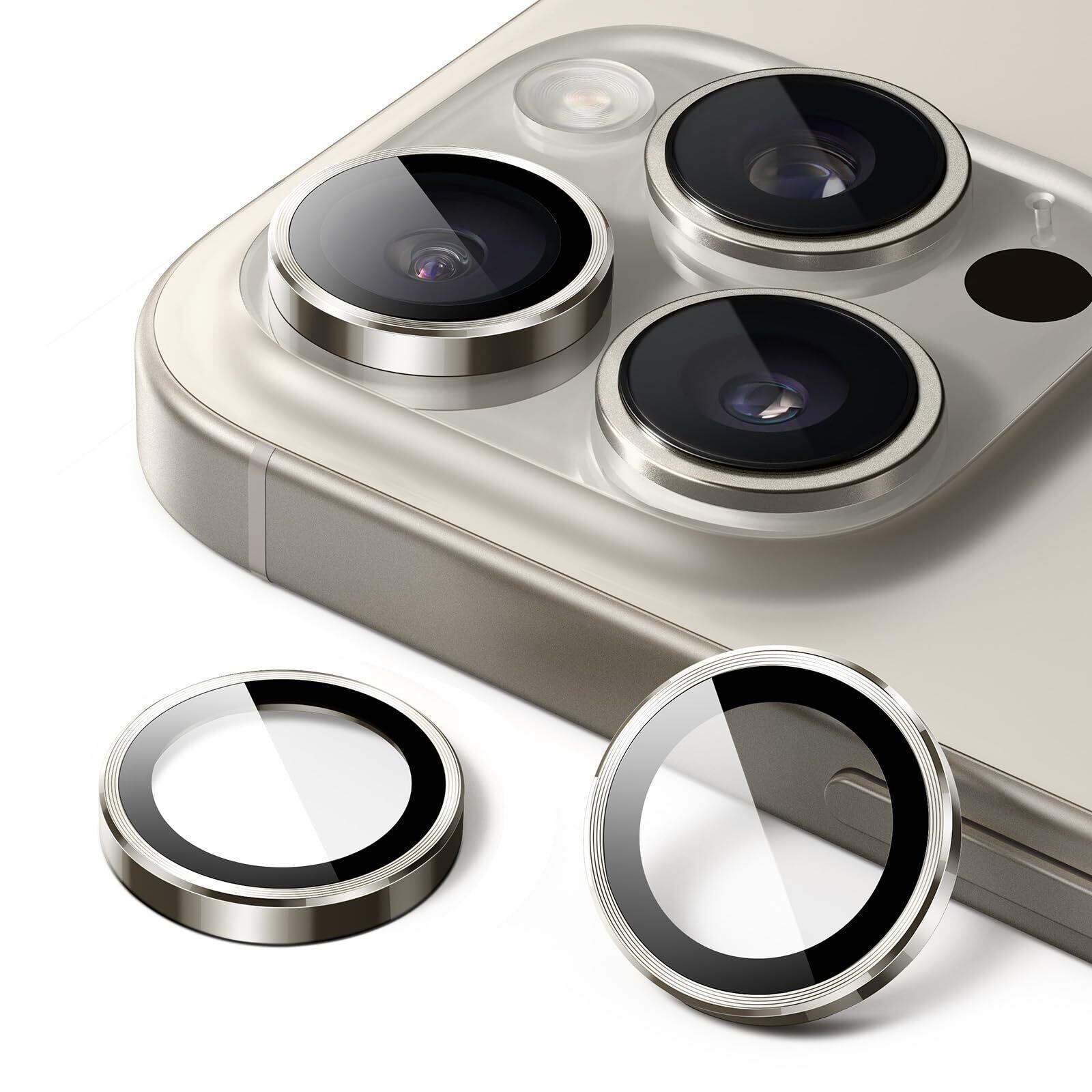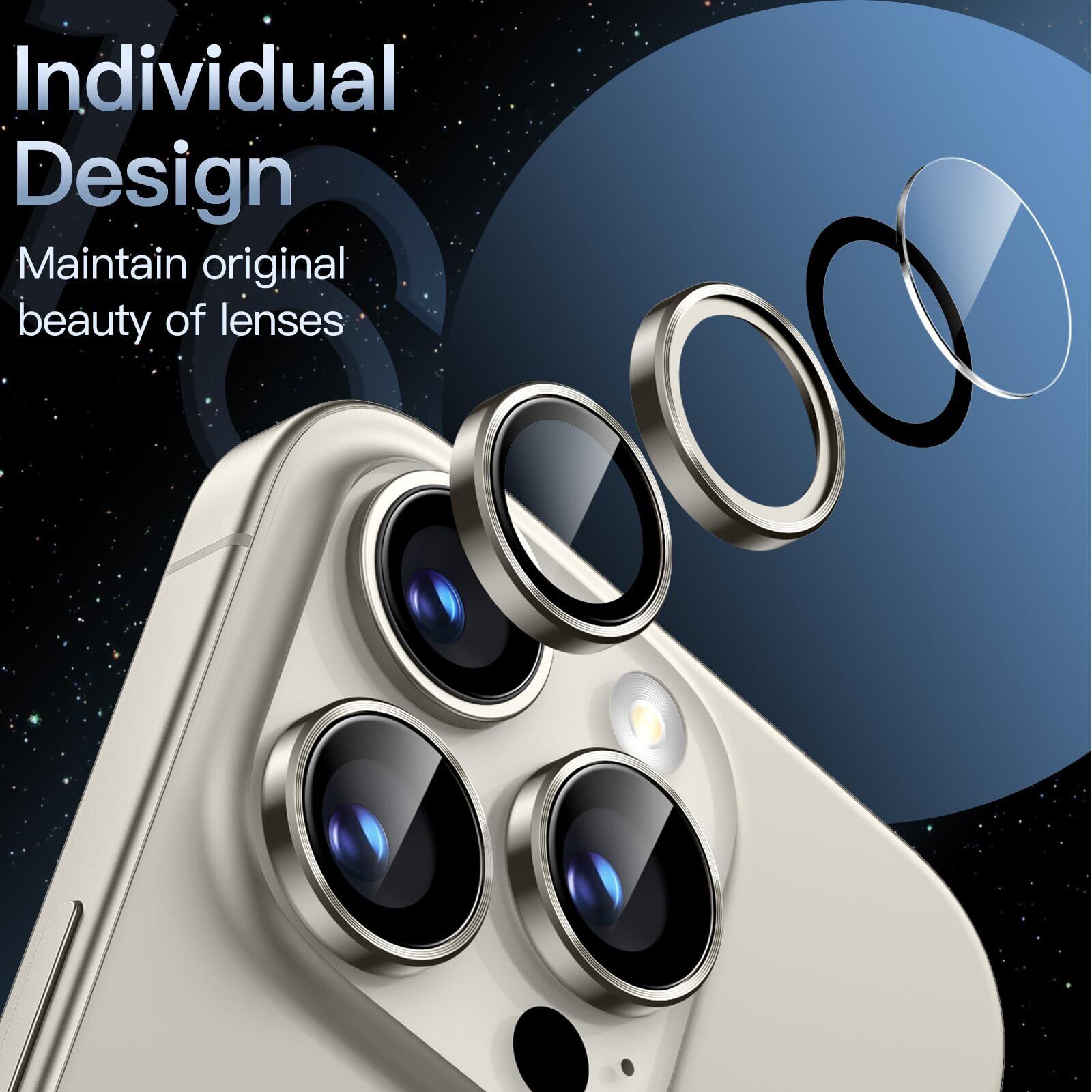 JETech iPhone 16 Pro 6.3インチ / iPhone 16 Pro Max 6.9インチ用 カメラレンズフィルム 9H強化ガラス製 個別の金属リングカバー HDクリア 1セット (ナチュラルチタニウム)