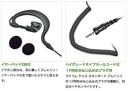 【人気商品】アイコム対応 インカム イヤホンマイク 耳掛け式 ( アルインコ用 /ヤエス用 / スタンダード用 / モトローラ用のトランシーバー1ピン 防水ねじ込み式プラグに互換 ) HGカールコード FTH-107 FTH-108 FTH-208 FTH-307 FTH-308 SR-40 SR-45 SR-70 SR-100 DJ-P22 DJ-P221 IC-4300 IC-4350用 EME-36A HM-177PI SSM-59 MH-381A4B 互換品 FIELD GEAR EV4MHG | gsmshop