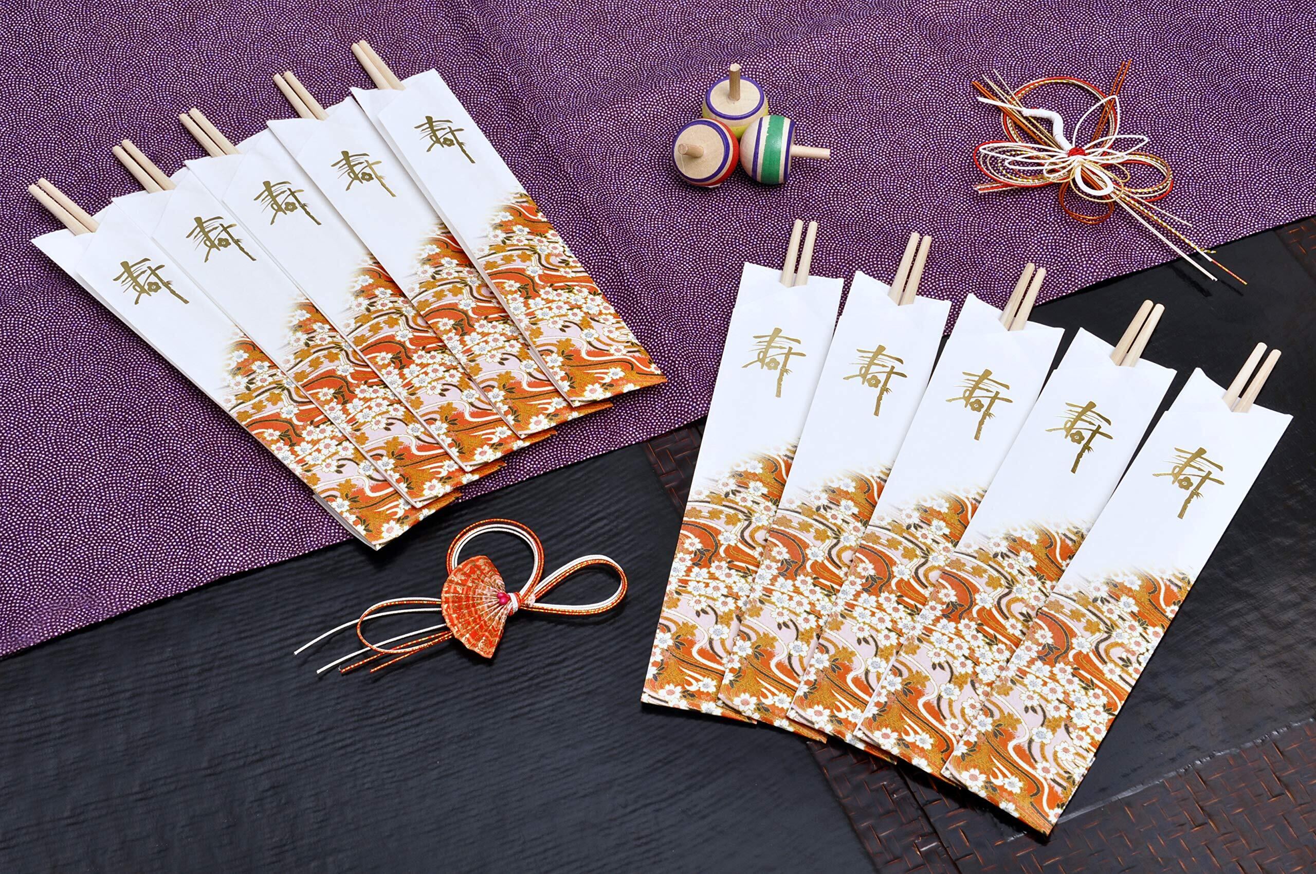 【在庫セール】酒井産業 国産ひのき祝い箸・錦染め(10膳組) 約長24cm 国産 日本製 業務用 割箸 新年祝い 御祝 吉事 おせち お節 御馳走 ごちそう お膳 祝い膳 お正月 迎春グッズ 迎春 新年 元旦 おしゃれ お食い初め 寿 縁起 水引 雑煮 三が日 結婚 祝箸 祝はし 祝ばし 祝いばし 祝いはし 柳箸 両口箸 | gsmshop