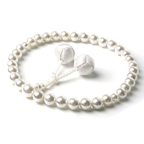 EsuonHappiness 数珠 女性用 貝パール 西陣織金襴 数珠袋付き 梵天房 本貝 パール念珠 8mm