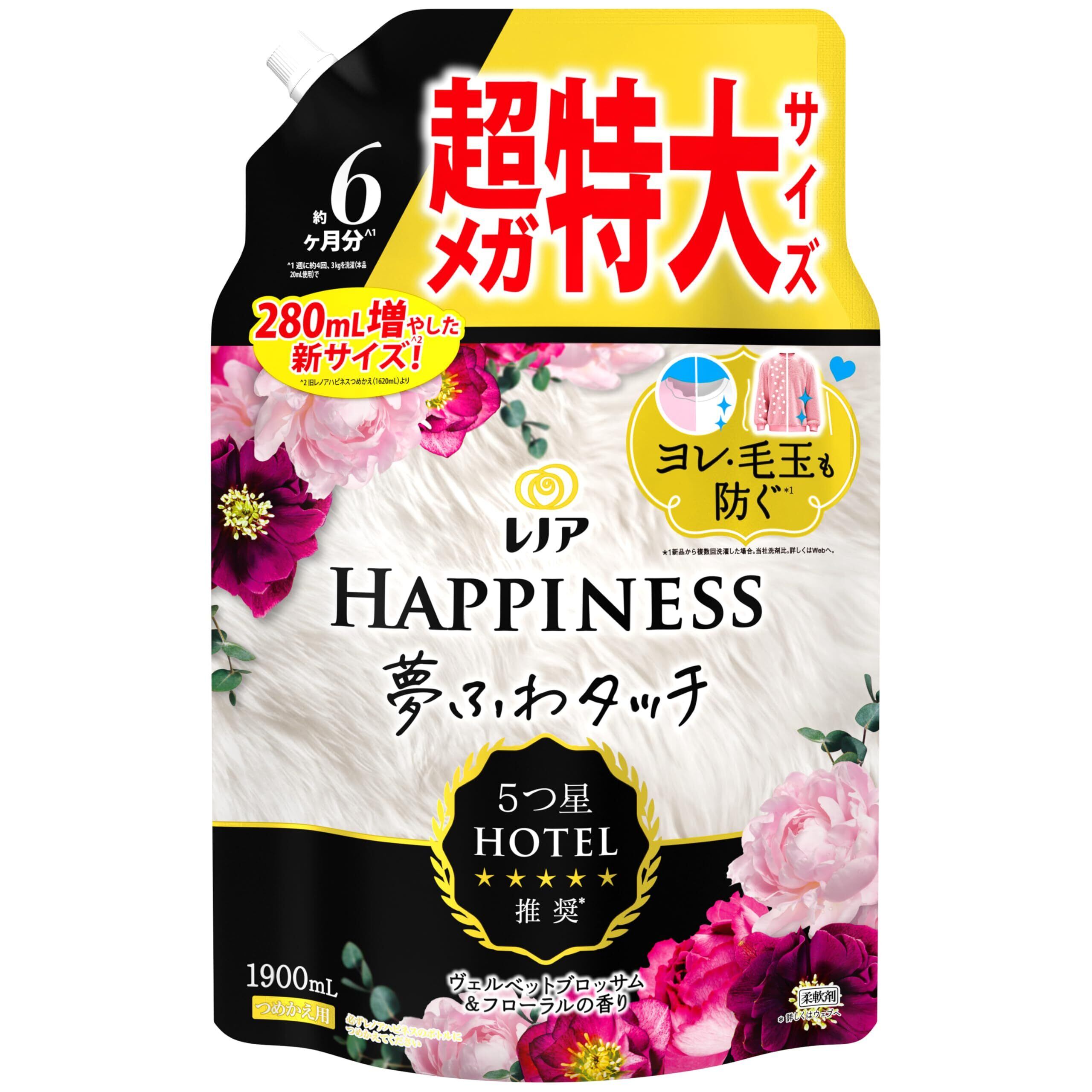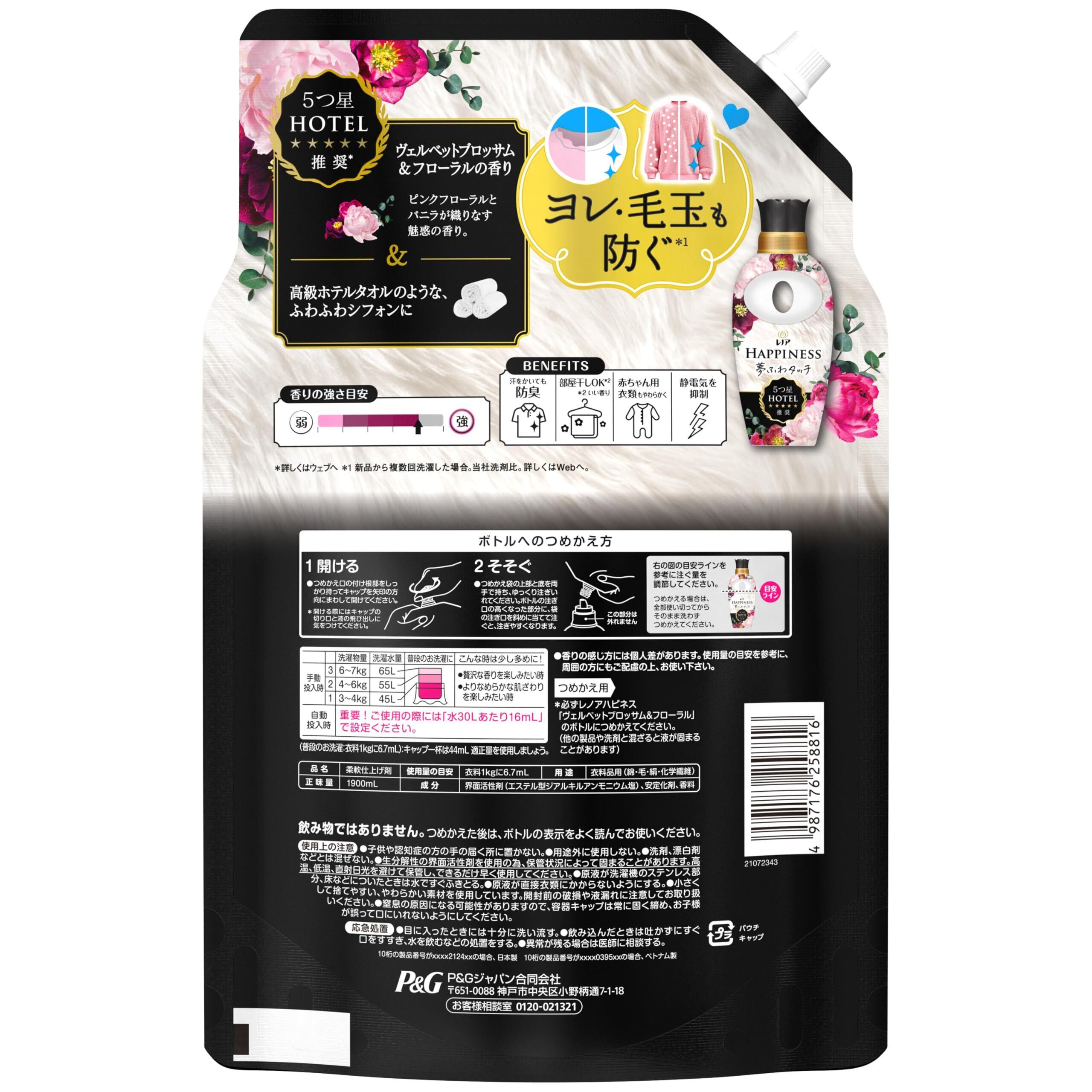 レノア ハピネス 夢ふわタッチ 柔軟剤 ヴェルベットブロッサム&フローラル 詰め替え 1,900mL [大容量]