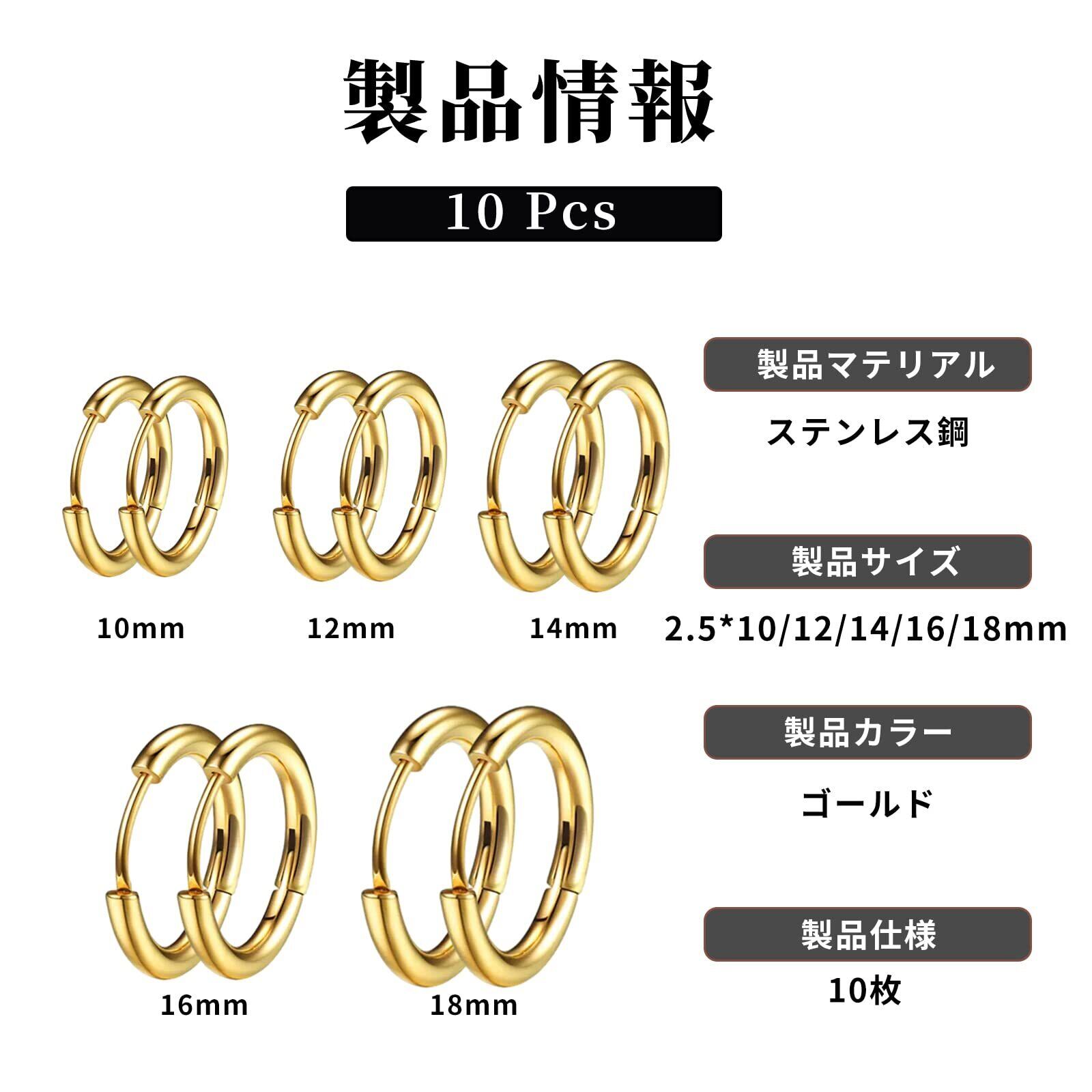 [Doyime] フープピアス【5ペア】 メンズ レディース ピアス 両耳用 リングピアス 金属アレルギー対応 人気 エレガント アクセサリー サージカルステンレス 男女兼用 ゴールド (サイズ10mm-12mm-14mm-16mm-18mm、幅2.5mm)