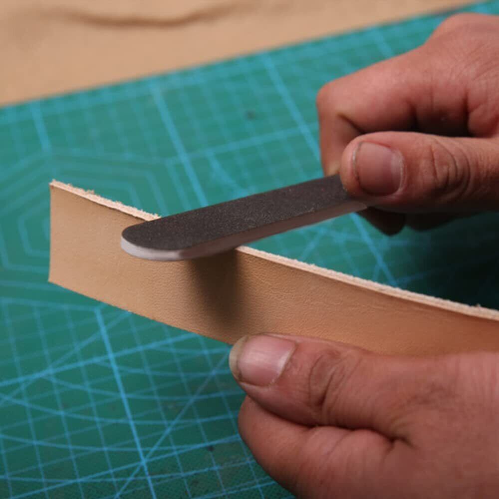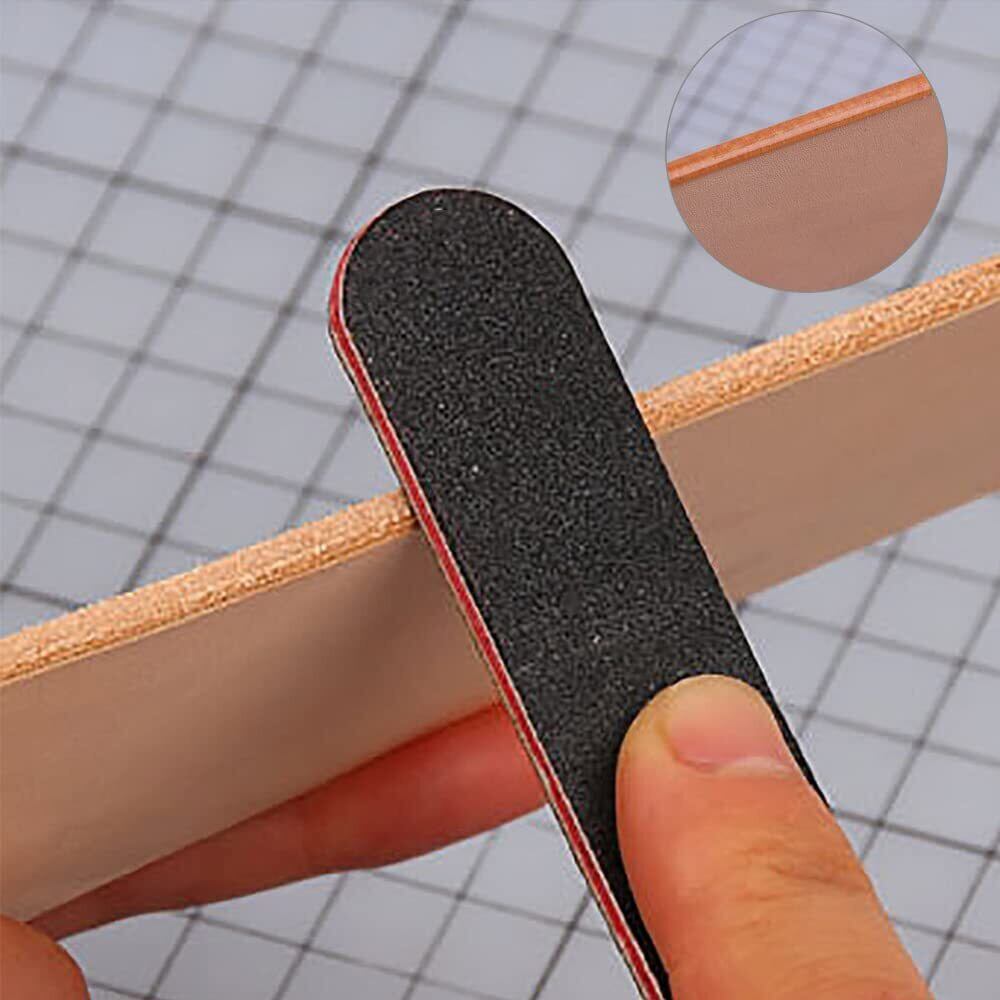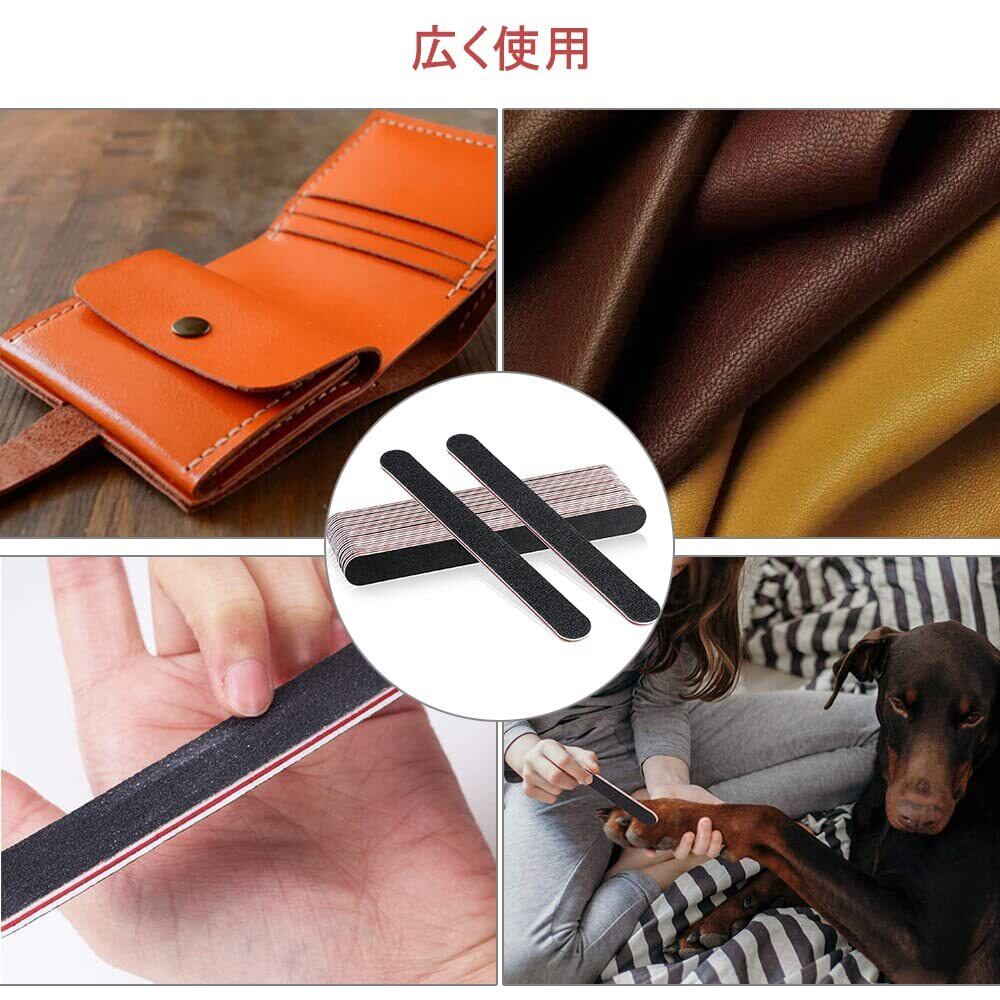 商品仕様:セット内容:10枚セット、素材:EVA+ガーゼ紙+ラバーシート、サイズ:18*2cm、カラー:ブラック。 荒目/細目の両面タイプで、“荒目のタイプは貼り合わせの段差などをなくすときに”、“細目のタイプはある程度コバを整えるときに”と使用する場面に合わせて使い分けていただくことで、高度な仕上がりになります。 レザークラフト工具です:接着面の段差や面取り痕などを整えて、その後のコバ磨きを美しく仕上げる事ができます。 プロにも初心者にもお使いいただけます:愛をこめて仕上げることを心がけると自然と作業が丁寧になり、初心者でも、つるつるピカピカになったと喜びの声が届くほどです。 広く使用:財布、バッグ、キーケースなど、全てに共通して言えることが。