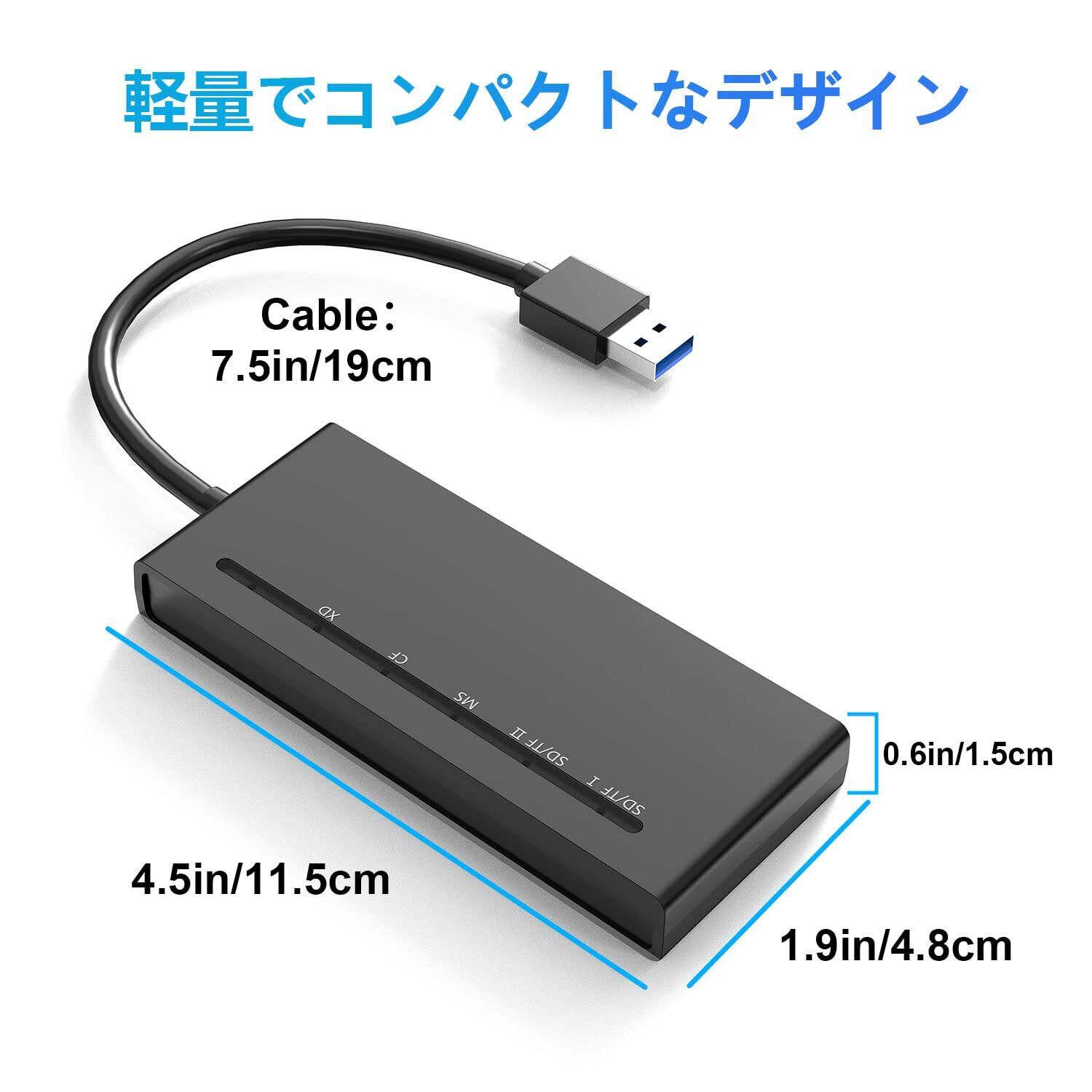 [幅広いカード互換性] このカードリーダー usb3.0はCFカード、SDカード、SDXC、SDHC、マイクロSD、マイクロSDXC、マイクロSDHC、TF、M2、MS、XD(XD-ピクチャーカードの全シリーズ、オリンパスと富士フィルムXDピクチャーカード1GB 2GBを含む)メモリーカードなどに対応しています(注:M2/TFは同じカードスロットです)。
