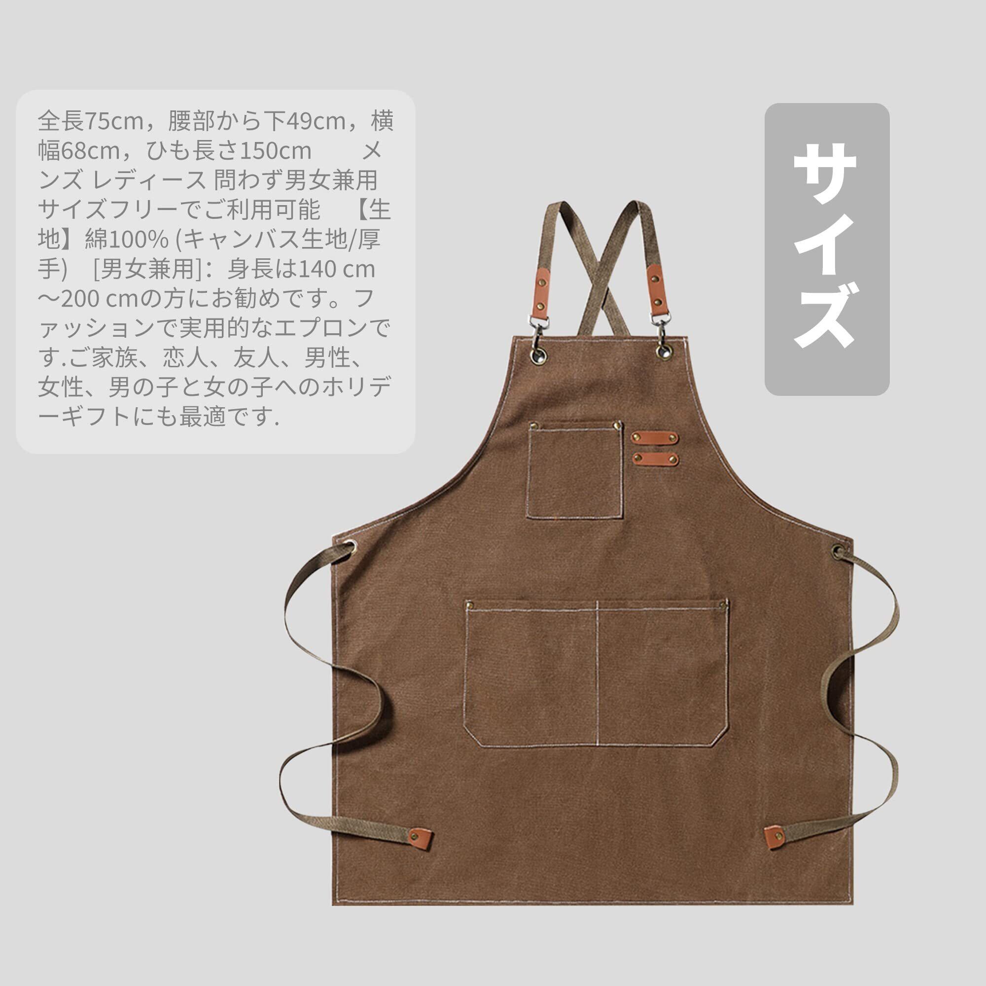 [サイズ]:【画像参考】全長75cm,腰部から下49cm,横幅68cm,ひも長さ150cm メンズ レディース 問わず男女兼用 サイズフリーでご利用可能 【生地】綿100% (キャンバス生地/厚手) [男女兼用]:身長は140 cm〜200 cmの方にお勧めです。ファッションで実用的なエプロンです.ご家族、恋人、友人、男性、女性、男の子と女の子へのホリデーギフトにも最適です.