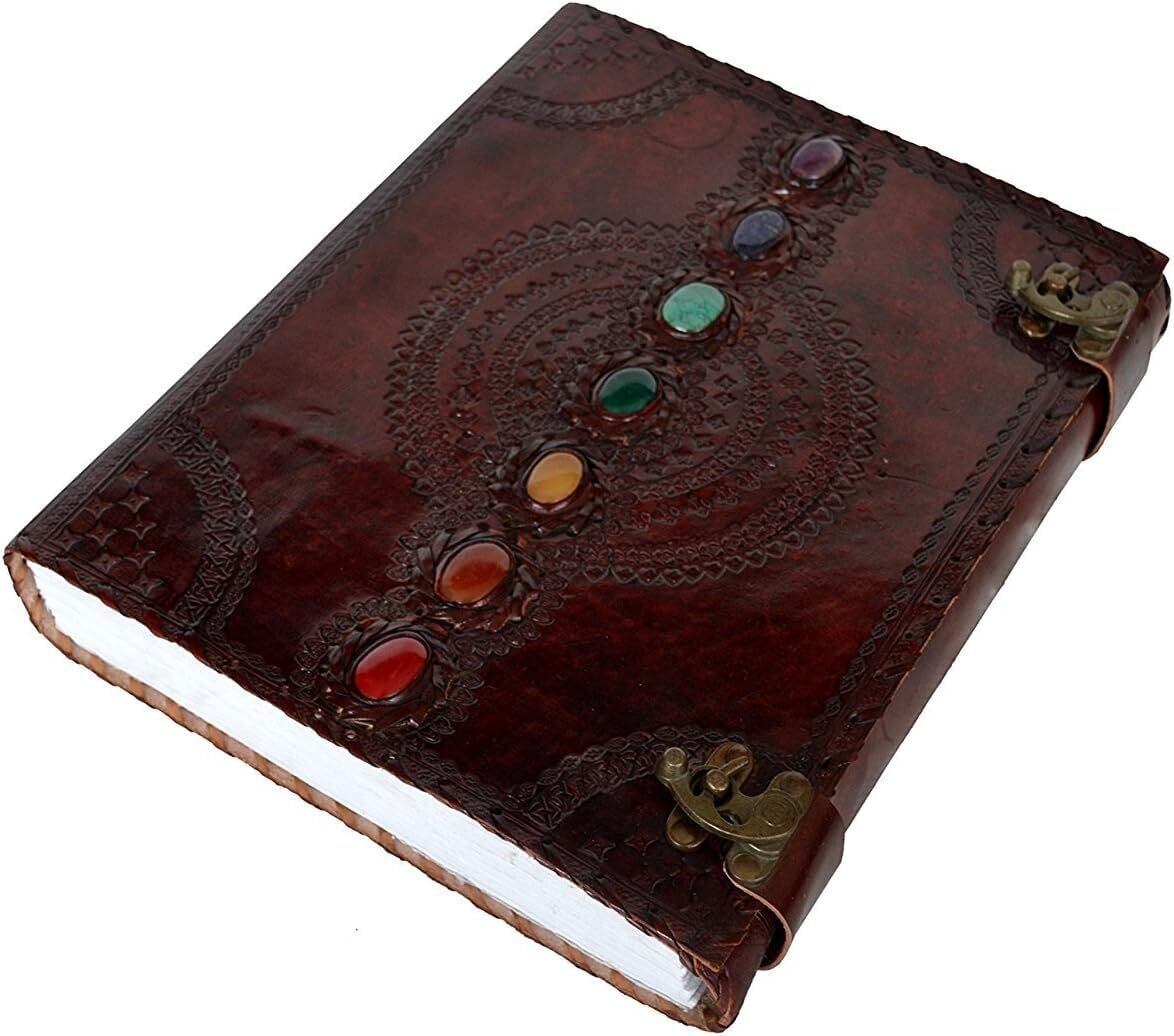 Leather Journal Book Seven Chakra Medieval Stone Embossed Handmade Book of Shadows Notebook Office Diary College Book Poetry Book Sketch Book 10 x 13 Inches