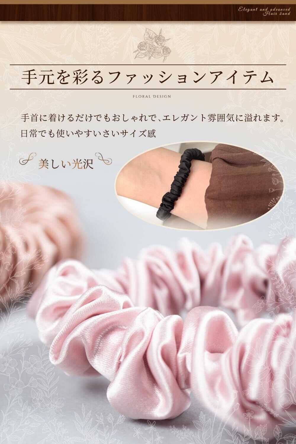 ヘアゴム シュシュ 髪ゴム ヘアアクセサリー 【髪に優しい・跡がつかない・ダメージ軽減】ヘアゴム 大人 おしゃれ かわいい 3個セット (02.ブラック)