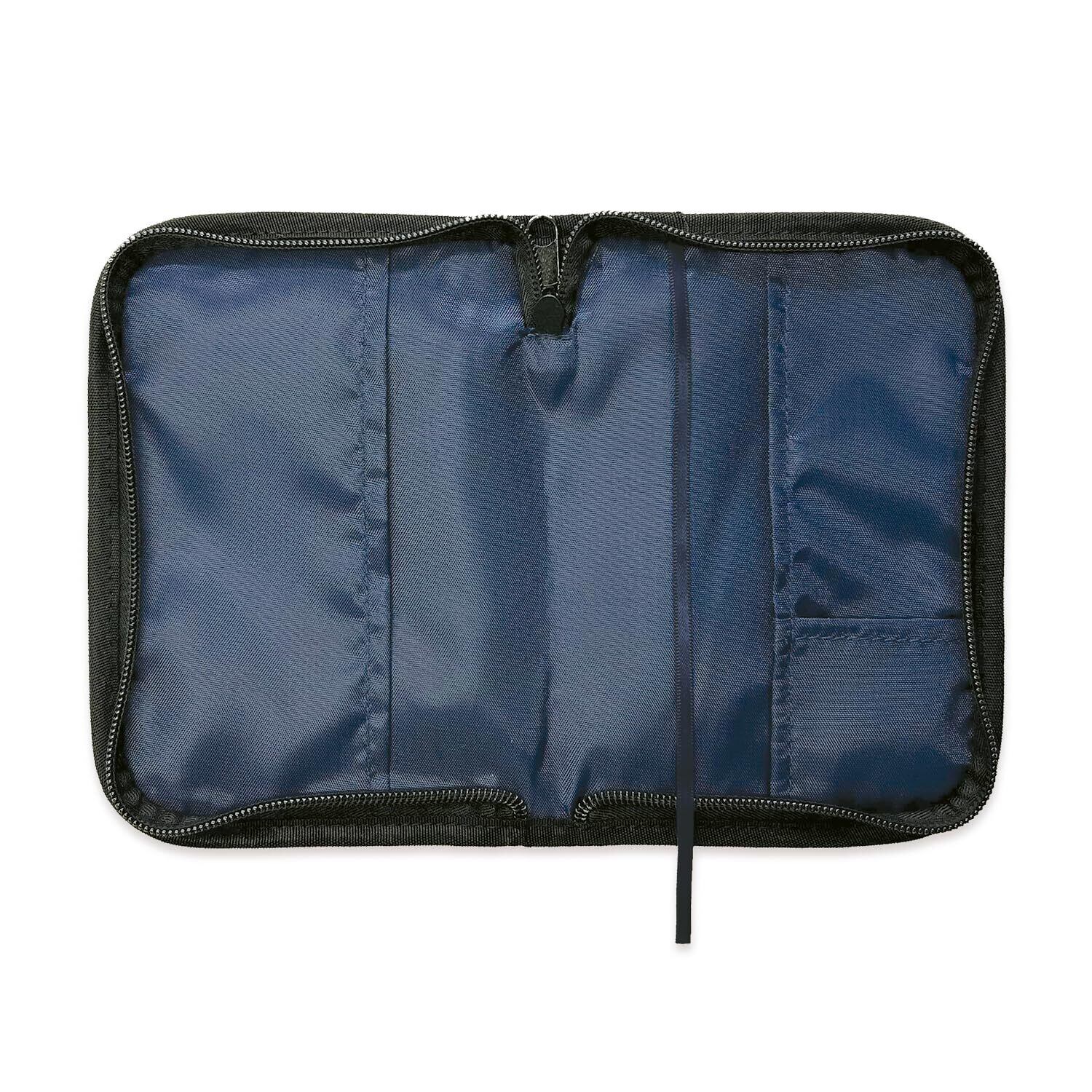 本を傷めず持ち歩ける、ファスナー付きのラウンドジップタイプのブックカバー