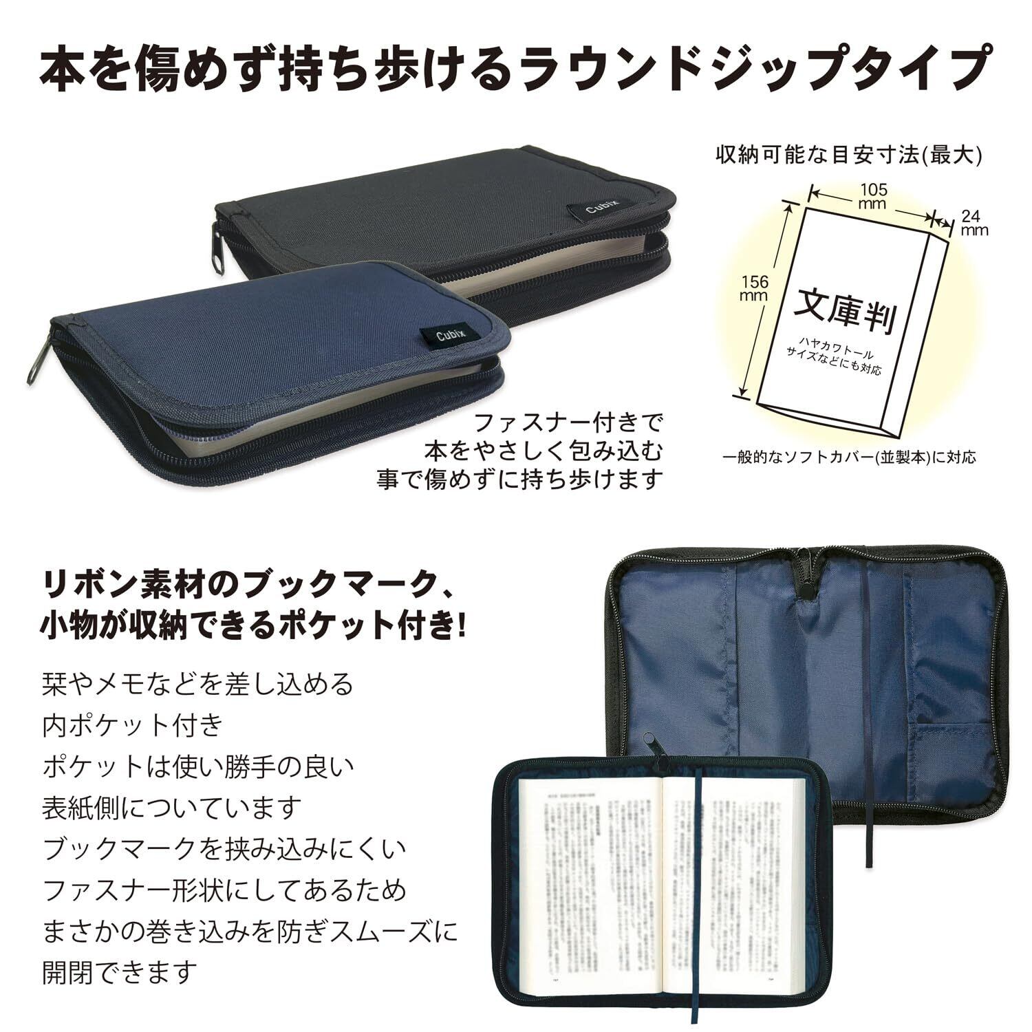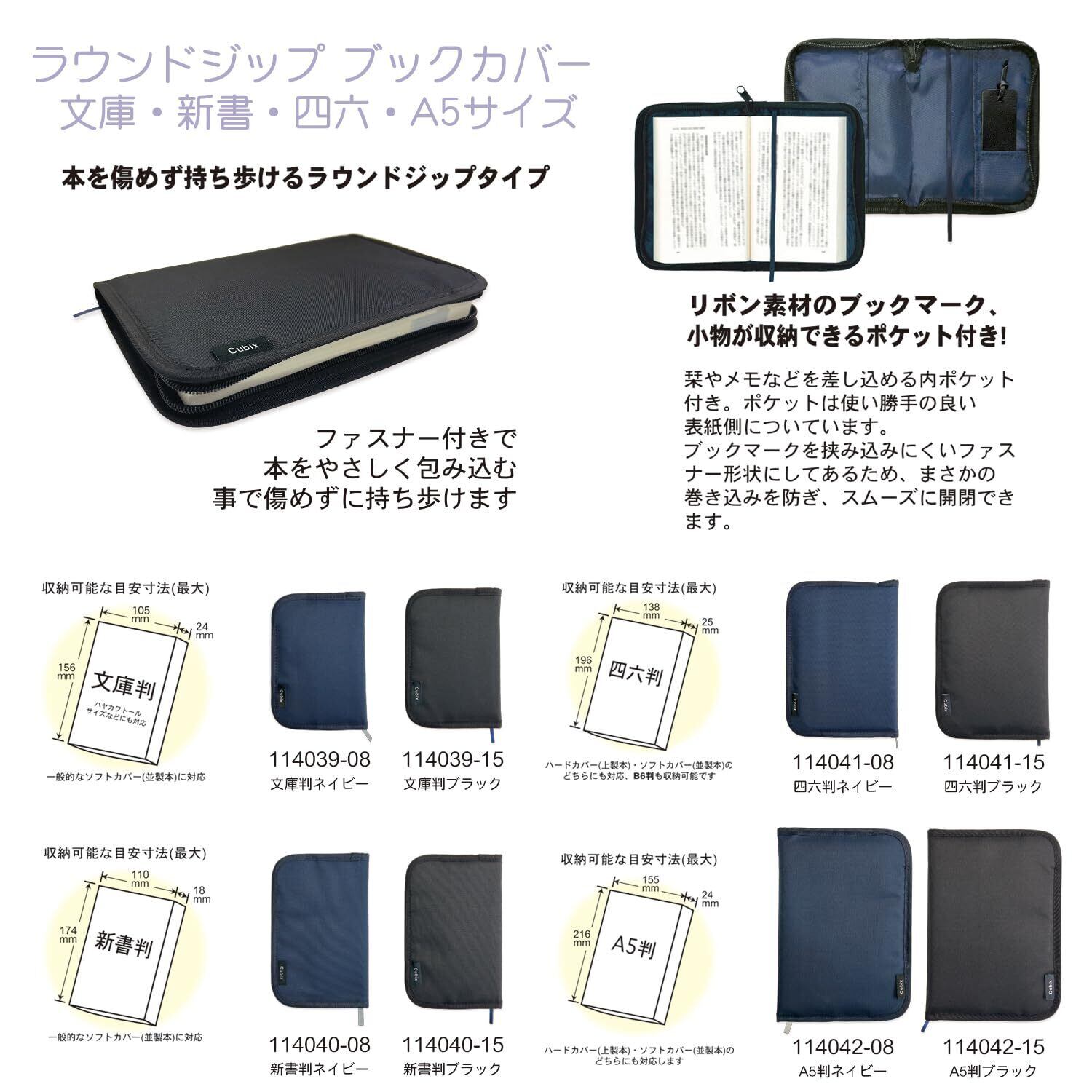 商品名:エムプラン ブックカバー キュービックス ラウンドジップN 文庫サイズ ブラック 114039-15-100